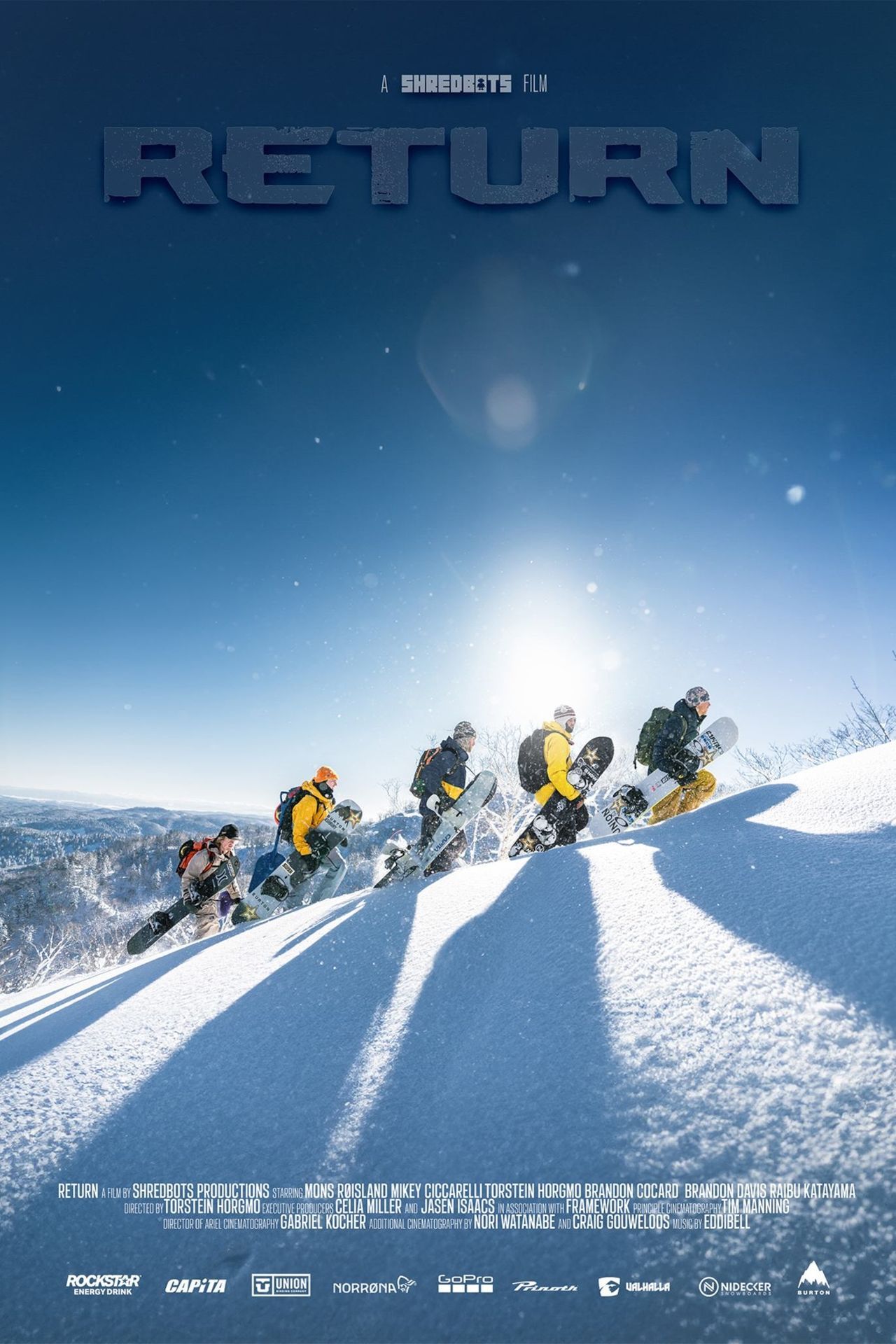 ‘RETURN’ follows Torstein Horgmo, Mikey Ciccarelli, Mons Røisland, Brandon Cocard, Brandon Davis, and Raibu Katayama as they push the boundaries of what can be accomplished snowboarding when innovative minds join forces.