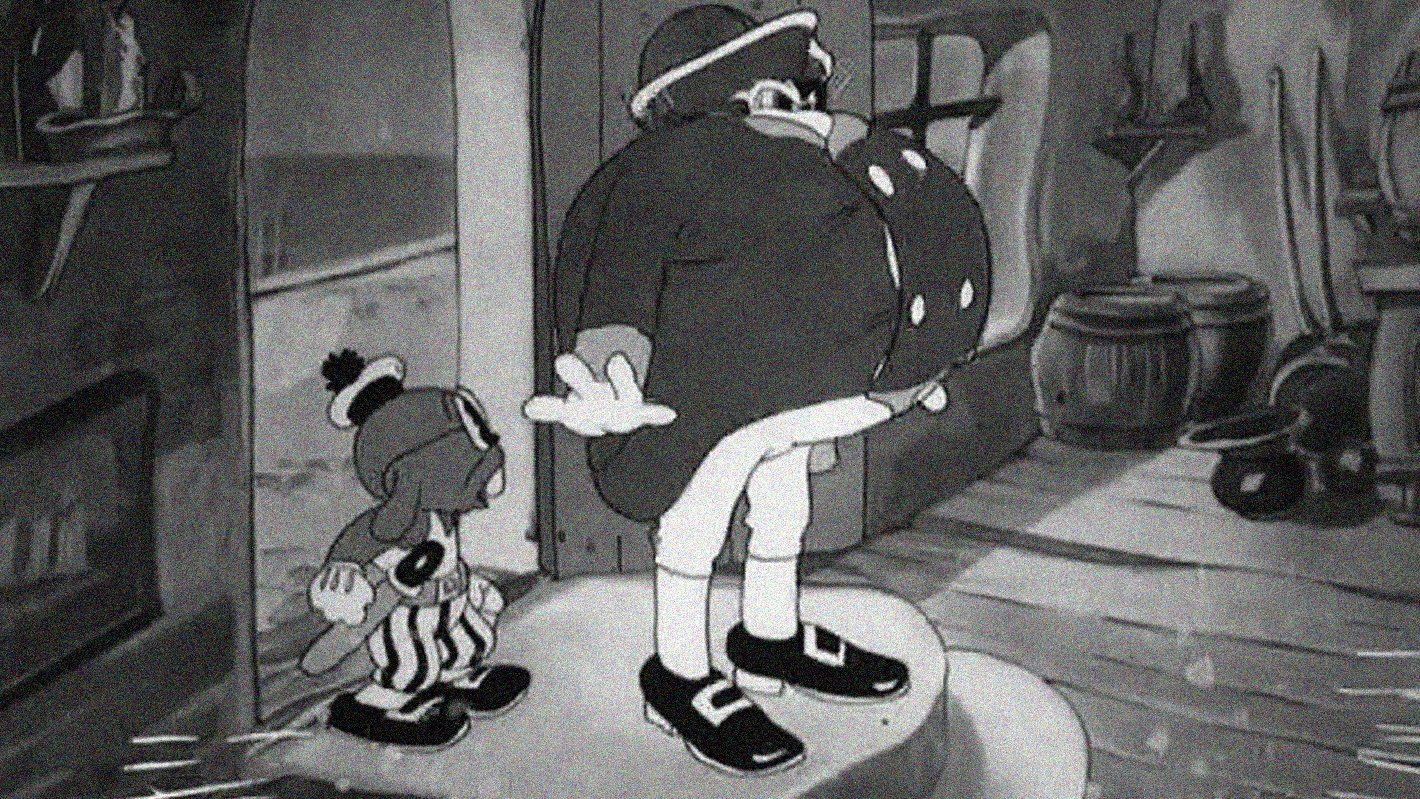 Porky and some of his fellow sailors are on shore leave in a bar. A pirate captain discovers that his own crew has jumped ship and forces everyone in the bar to become his crew. The captain treats the crew badly, particularly denying them food (eating the meat off bones, then passing them only the bones). The crew mutinies after a week; the captain tries to fend them off with a cannon, but ends up sending himself into the explosives stores.