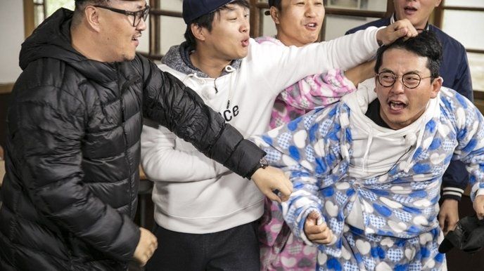 S3 • E419 Nov 22, 2015 90mThe members are playing games to decide who will be their partner.What would be the combination come out? When the mission is started, would they betray each other? Stay tuned to find out. At last, AOA's Seol Hyun takes part in the program as a special guest. First trip of November. Members wear special velcro outfits which has six areas that come apart. The person with the most area ripped off will have to sleep outside alone.