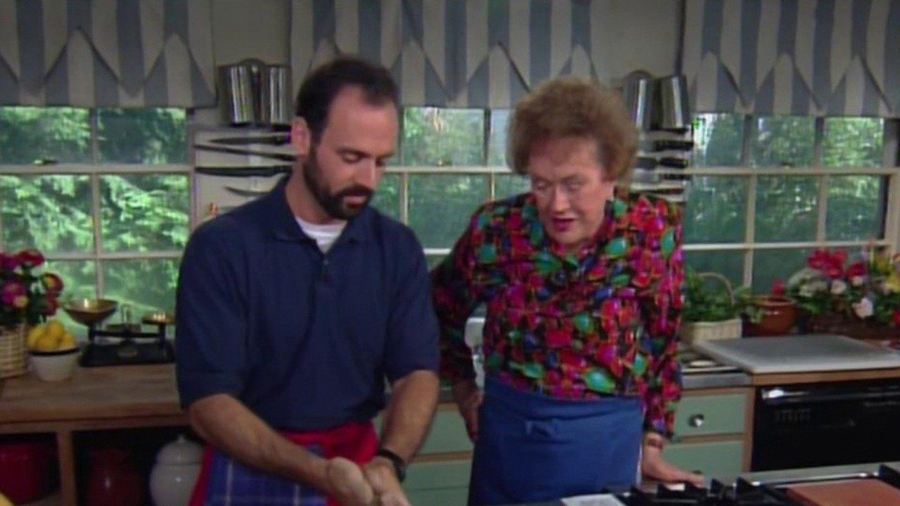 S2 • E10 Mar 8, 1997 26mJulia Child observes as chef David Ogonowski makes a triple chocolate truffle treat. He demonstrates how to make the dough for the chocolate tart shell and the filling, which consists of a custard flavored with bits of chopped white and dark chocolate and biscotti. Ogonowski also shows Julia how to make a garnish for the plate the dessert will be served on, including a wafer-thin chocolate cookie topped with homemade espresso parfait, creating a complex dessert of contrasting smooth and crisp textures, and warm and cool temperatures.