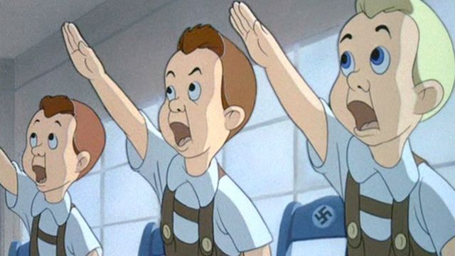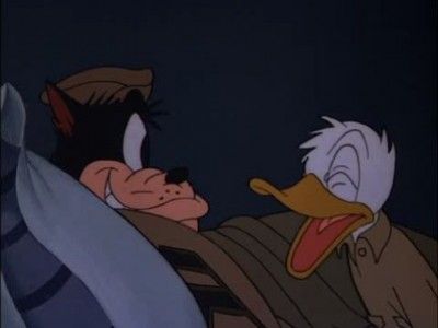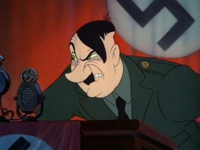 E1Der Fuehrer's FaceA German ""oom-pah"" band parades through town extolling the ""virtues"" of the Fuehrer with the title song. They awaken Donald Duck who has to go to work in a Nazi munitions factory, much to his regret. Luckily in the end, after a frantic workday trying to alternate between making bombs and saluting Hitler, he finds that it has all been a nightmare and that he is still living the the good old U.S.A. Der Fuehrer's Face won the 1942 Academy Award for Best Short Subjects: Cartoons.