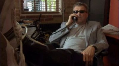 E8MadoffUnsettled and miffed about his new domestic situation, George is in the doghouse after he insults Erica the nanny's work ethic, then Claire's intelligence. Doug advises him to buy Claire a gift to apologize. So George pops into the hardware store to grab something. The hardware guy recommends flowers. They're a hit, but he misses the mark again when he suggests caging Bruno the Rottweiler. So off he heads for a better make-up gift before meeting with his broker. But before he can get down to business, Doug drags him to The Communal Mule coffee shop to admire the most beautiful woman in the world. George is overwhelmed. He hits on her pretending he's doing a show about how unhappy beautiful women are only to discover her life is amazing.  - Death by Cliche
