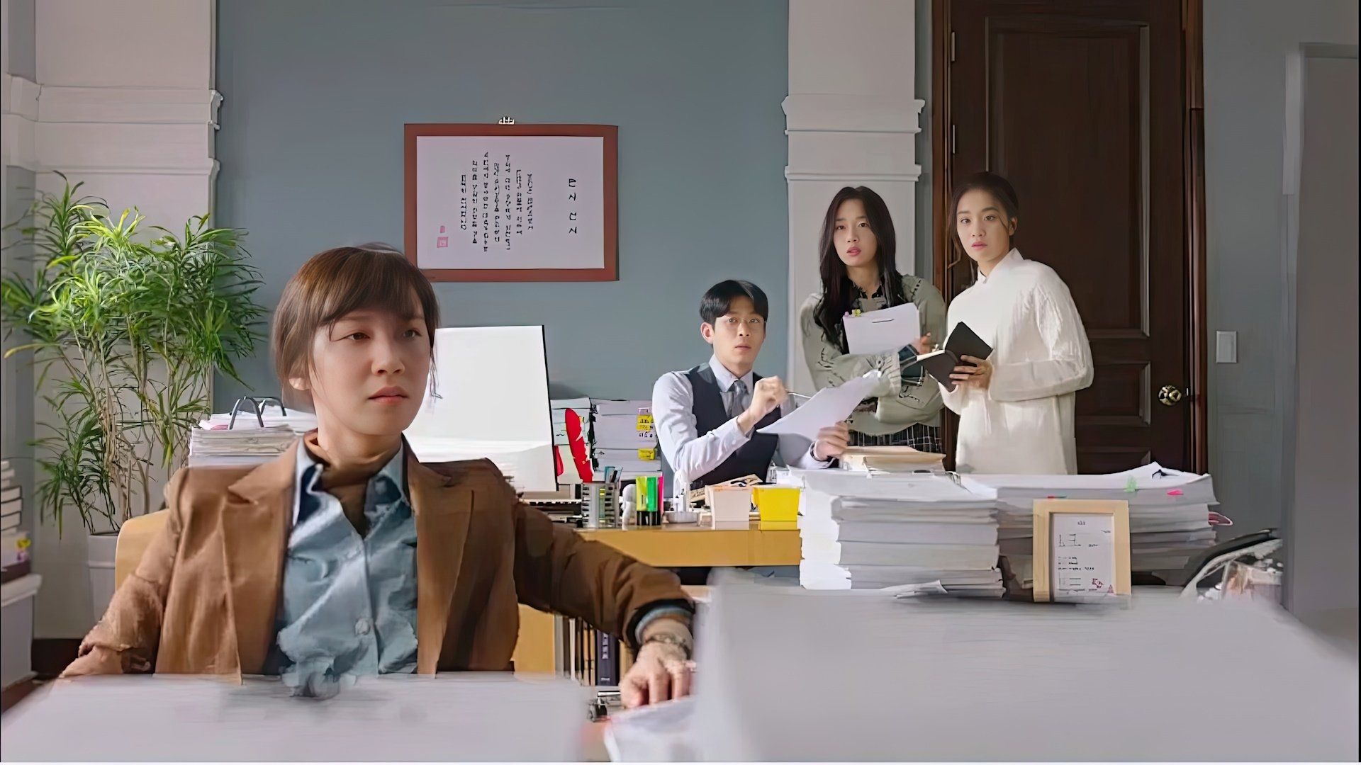 Lee Jung-joo is frustrated by Chief Oh’s rejection of her judicial opinion and placing a giant question mark on it. Jung-joo finds out that Kim Ga-young’s father, Kim Hee-chul, and Jang Soon-bok’s husband, Seo Gi-ho had worked for the Assemblyman. One of Kim Ga-young’s tennis shoes is in Seo Yong-soo’s possession.