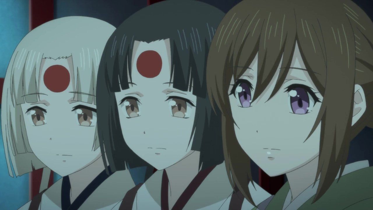 The kagura hall is lit up and the ceremony has started. Lured by the smell of cucumber, Chibi goes inside the screen. After hearing his scream, Aoi pulls up the screen only to find out that the umi-bouzu has the same feelings that she had in the past.