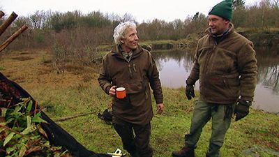 A hunter and a cook camps in the wild to hunt and prepare wild animals.