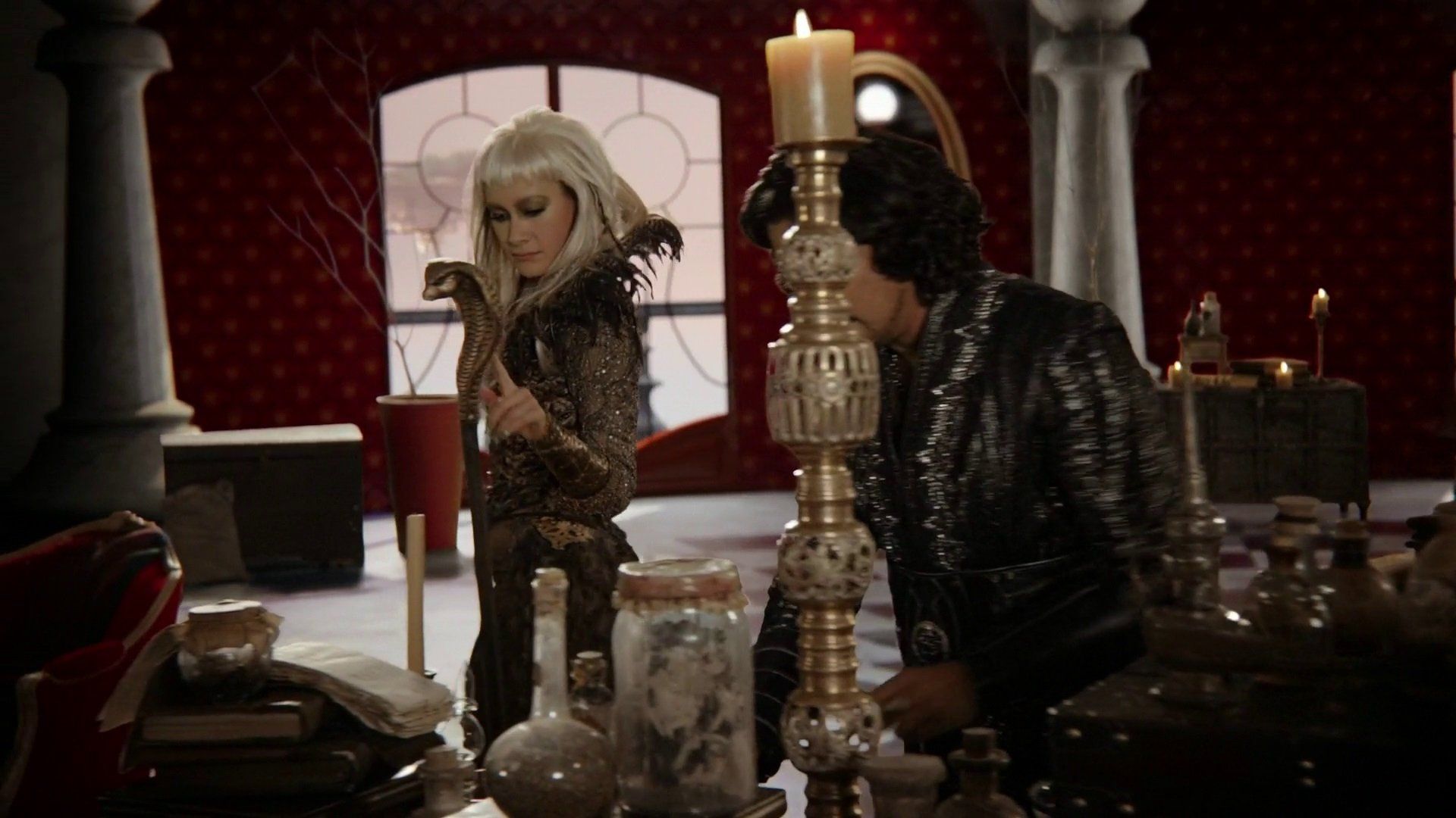 E3Forget Me NotWith the Genie's bottle in her clutches, the Red Queen sends the Bandersnatch after Alice since Jafar needs her in order to use Cyrus (who is discovered to have contacted her). Alice and the Knave of Hearts head to the house of the Grendel in the Whispering Woods to obtain the Forget-Me-Knot so that they can find out who stole Cyrus's bottle before Jafar could steal it. In the Knave of Hearts's flashback, it is shown that he joined up with Robin Hood's Merry Men back when he was Will Scarlet. It is also revealed that Wonderland's Red Queen was once his love Anastasia. - Heart of Stone