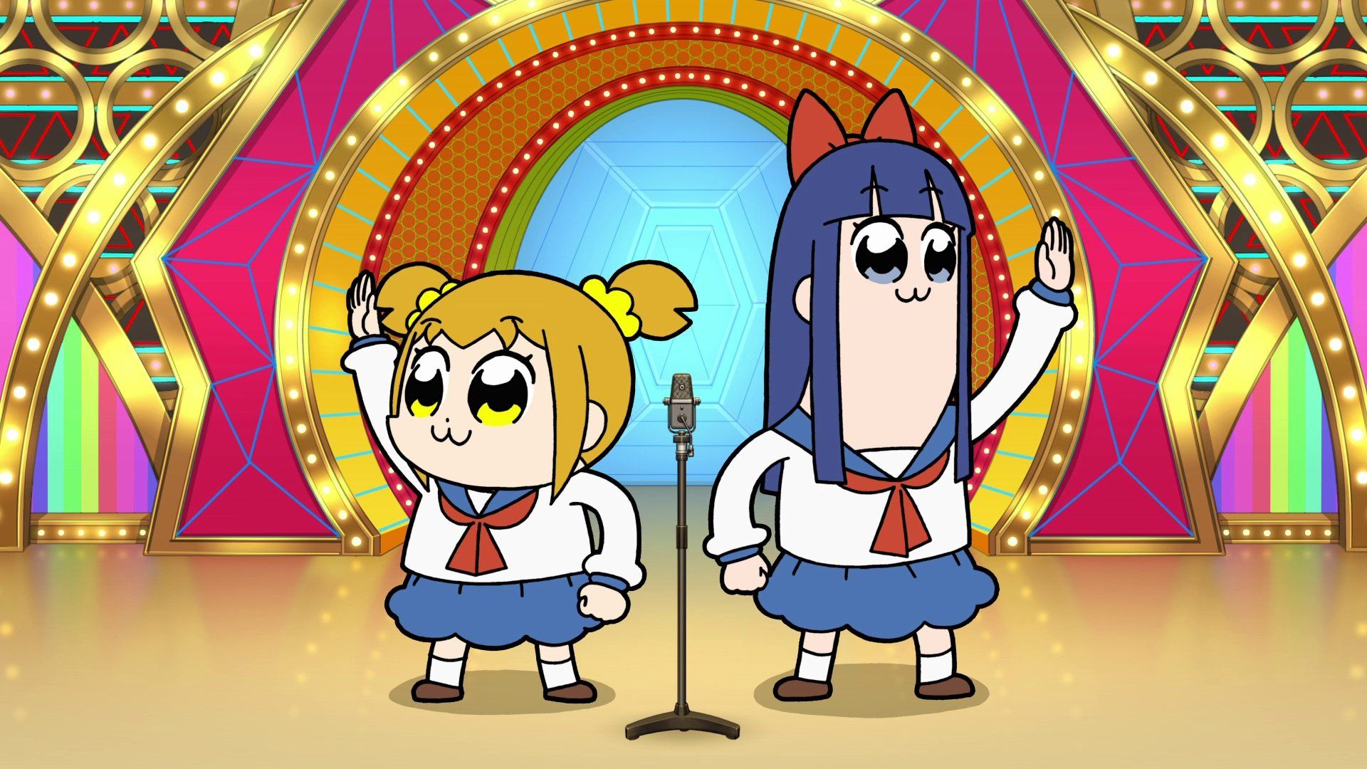 E2 Apr 1, 2019 24mPopuko and Pipimi discuss potential careers in the future, playing out a scene where Popuko plays a convenience store clerk being hassled by both Pipimi and Cthulhu, before it degenerates into a certain film. Other skits include Popuko allured by a food truck, a clay-mation of Pipimi playing Daruma Otoshi, and Pipimi telling Popuko what 1+1 is. The post-credit scene is the chapter 1 opening scene of Square Enix's Final Fantasy XV, called "Departure", only with Popuko masks on Noctis, Gladious, and Prompto, and a Pipimi mask on Ignis. The prologue skit and opening animation is done by Sunrise (Bandai Namco Filmworks) with Masami Obari as the supervisor.