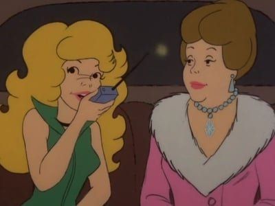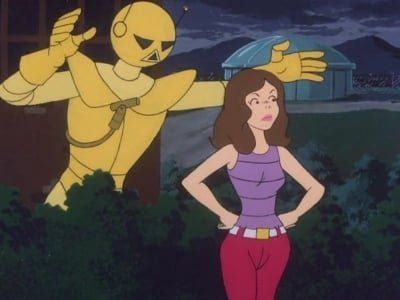 Beastwoman (2)B.F. manages to release himself and reprogram Dog Wonder so he won't obey Beastwoman's Beastwhistle. B.W., meanwhile, employs some bird to seed the clouds and have them rain on the seeded Big City, turning it into a jungle. The Daring Duo learn she plans to do this to the rest of the U.S.A. via rocket power, so Blue Falcon detains Beastwoman whilst Dynomutt goes up with the rocket which crashes into the lake and D.W. becomes a moss-covered mechanical mutt. Blue Falcon severs Beastwoman's powers by snipping her veins, and Big City is restored to normal. Blue Falcon attempts to shear Dynomutt's veins, but the latter decides to shake them off by dancing the Hula. - The Glob (1)E14