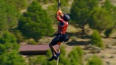 E15Vertical SweepMission: ""Vertical Sweep"" - To rapell a rock wall while collecting flags the fastest. Mission Winner: Real World Freshlook Eyesaver Winner- Real World: Alton (RW12) Road Rules: Adam (RR10) Sent to the Gauntlet- Real World: Irulan (RW12) Road Rules: Sarah (RR11) Gauntlet Mission: ""Dead Man's Drop""- Hang upside down aslong as you can 10 feet above a pool of water. - Dukes of Saturn