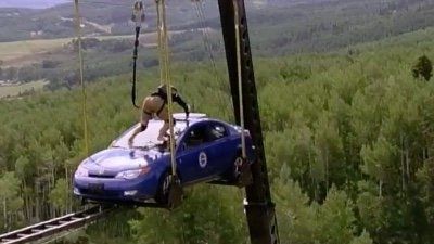 E16Dukes of SaturnMission: ""Dukes of Saturn""- To Climb out of one car, crawl across a ladder, and climb in another car thats hanging 100 feet above the ground. Mission Winner: Real World Freshlook Eyesaver Winner- Real World: Alton (RW12) Road Rules: Veronica(RR8) Score Board- Real World: $60,000 Road Rules: $80,000 To Be Continued... - Gold Rush Part 1