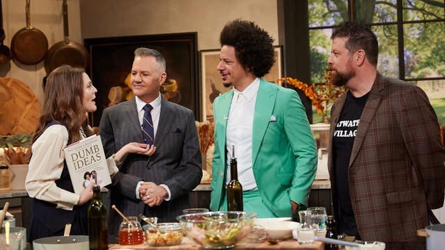 Drew and the Drew Crew are participating in a side dish competition with special judges and authors of the new book, “Dumb Ideas: A Behind-the-Scenes Expose on Making Pranks and Other Stupid Creative Endeavors” Eric André and Dan Curry. Plus, Eric and Dan join Drew in the kitchen for a little “Pranksgiving.”