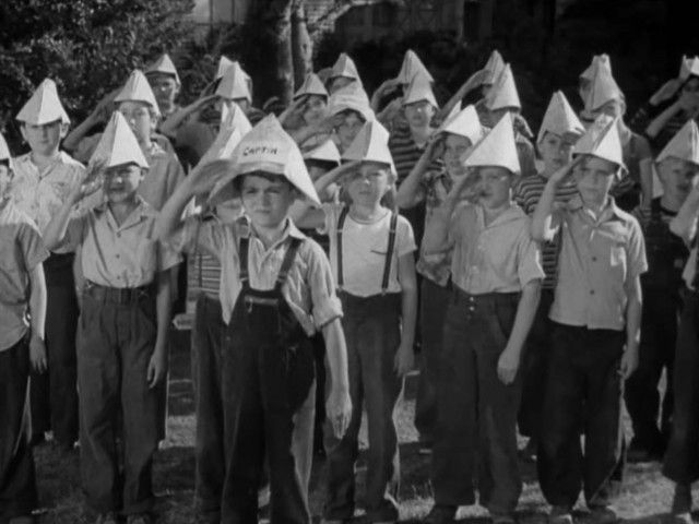 E1Helping HandsSpanky receives a letter from his brother in boot camp, who says that it's up to the kids to serve their country back at home. So, Spanky forms the Our Gang Army. Major Sanford comes along to explain that the kids would be serving their country better by cleaning up fire hazards, and collecting iron and aluminum, and the like.  - Come Back, Miss Pipps