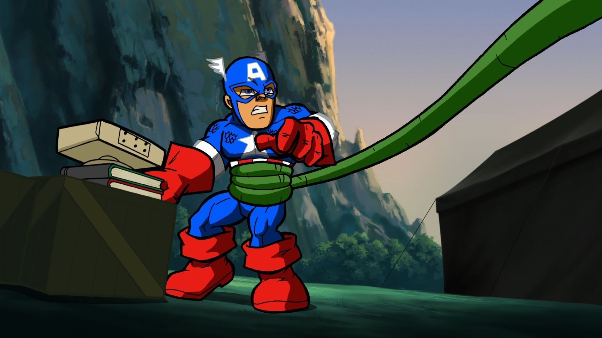 E11O Captain, My Captain!When he is tired of all he can take with the Super Hero Squad, Wolverine joins up with the internation All-Captains Squad (consisting of Captain America, Captain Australia, Captain Brazil, Captain Britain, and Captain Lichtenstein) as Captain Canada where he helps them fight Plantman in the Amazon. Meanwhile, the rest of the Super Hero Squad have an embarrassing encounter at Ringmaster's circus when Doctor Doom sent Abomination and MODOK to recruit Ringmaster. - Deadly is the Black Widow's Bite!