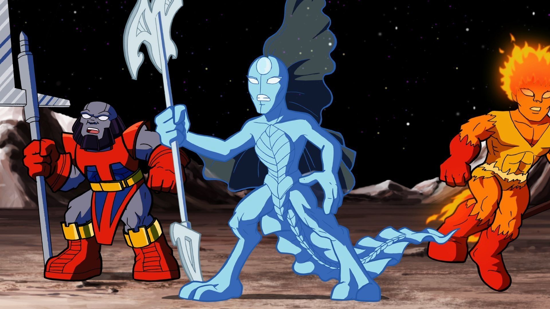E22The Ice Melt Cometh!Doctor Doom sends his "Team Toxic" (consisting of Pyro, Trapster, and Zzzaz) out in a Fractal-retrieving activity at the north pole only to run afoul of Iron Man, Thor, and Wolverine. While Flatman and Reptil lecture about the polar ice caps, the world starts flooding after Trapster sets off their super-spinner machine to self-destruct. Now Iron Man must convince Iceman to help save the day. - Wrath of the Red Skull!
