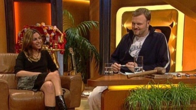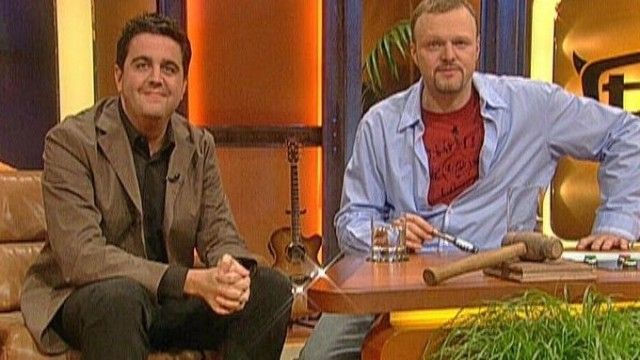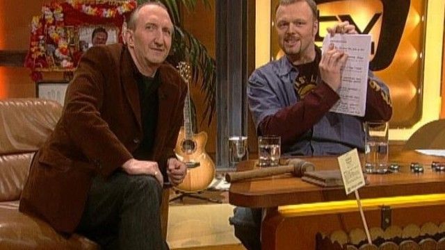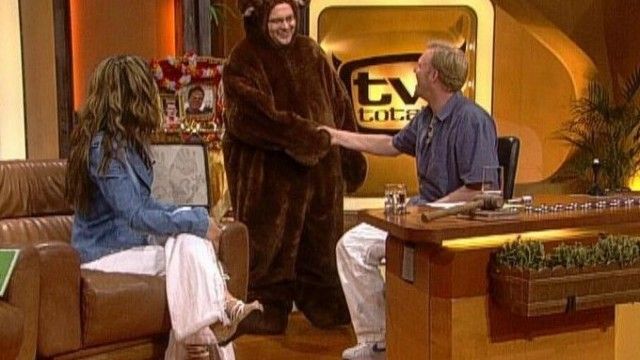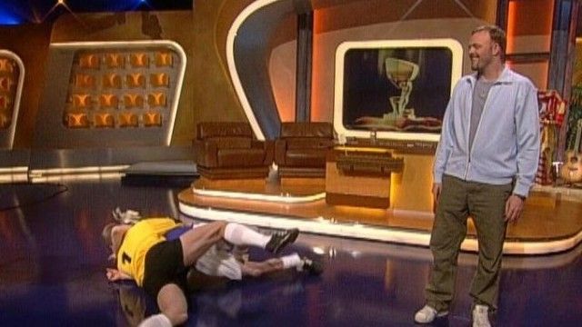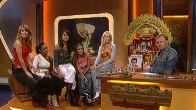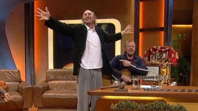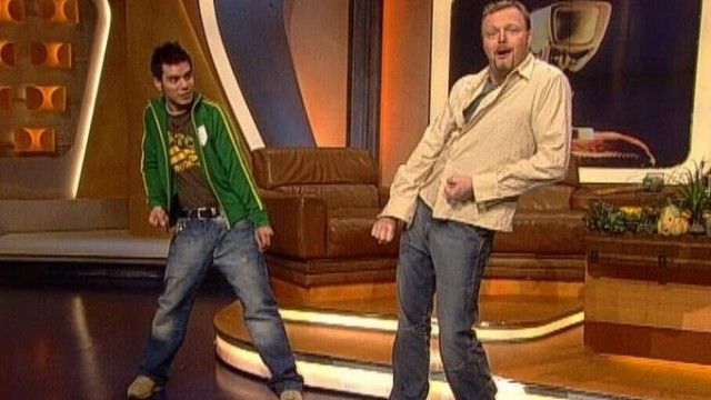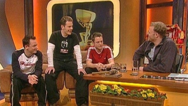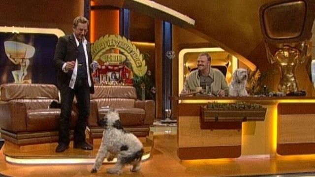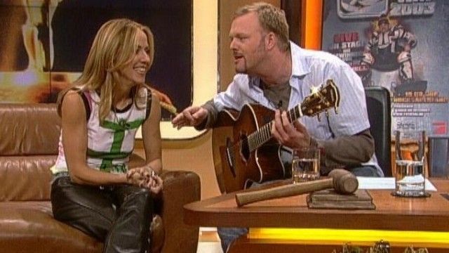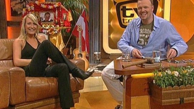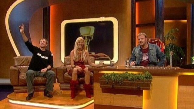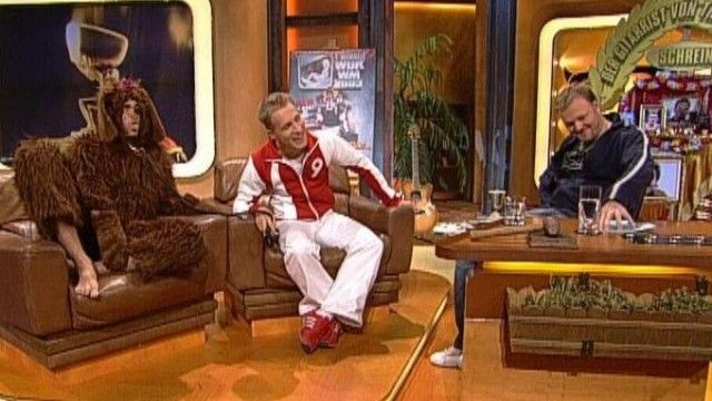 The set of TV total includes a floating interview stage that can be moved from one studio corner to the other. The show featured buttons with sounds and clips before Craig Ferguson's The Late Late Show.