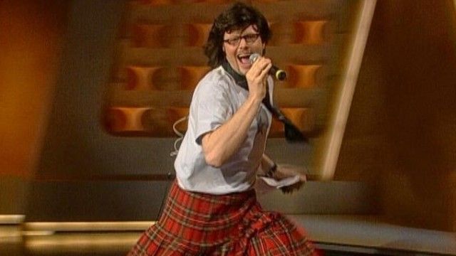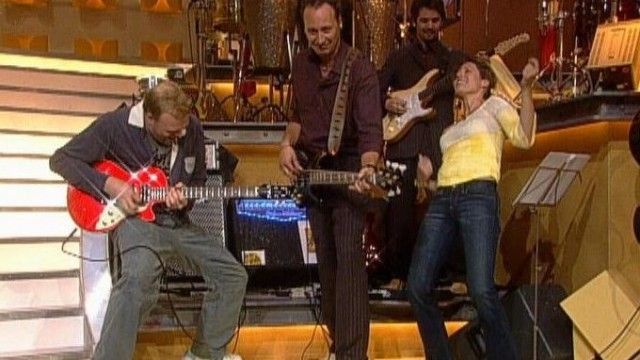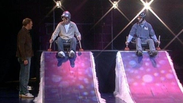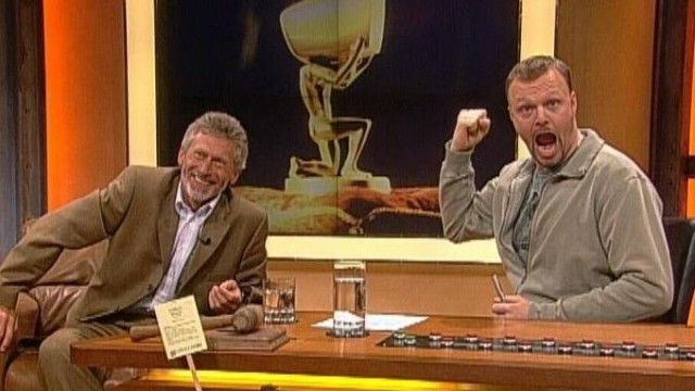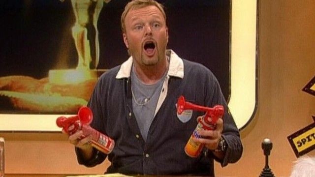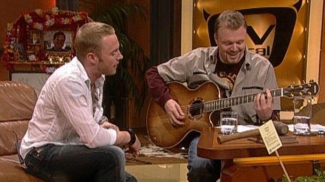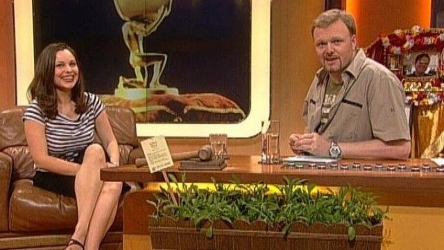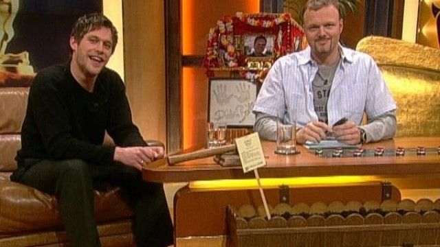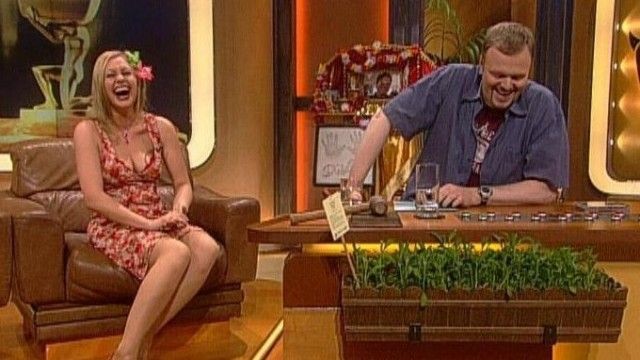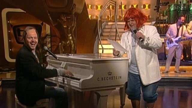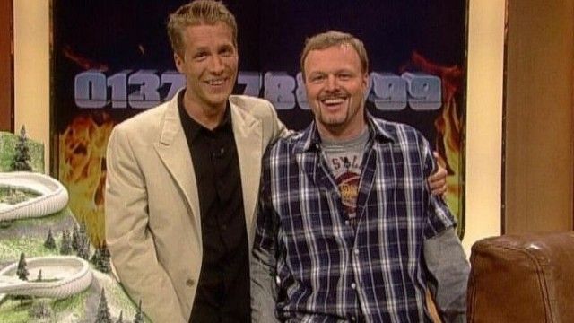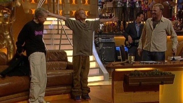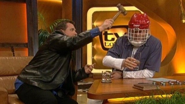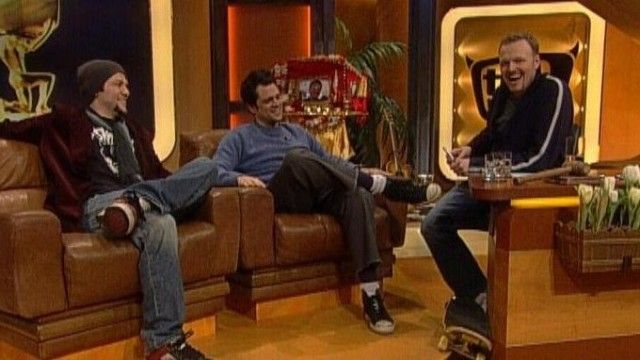 The set of TV total includes a floating interview stage that can be moved from one studio corner to the other. The show featured buttons with sounds and clips before Craig Ferguson's The Late Late Show.