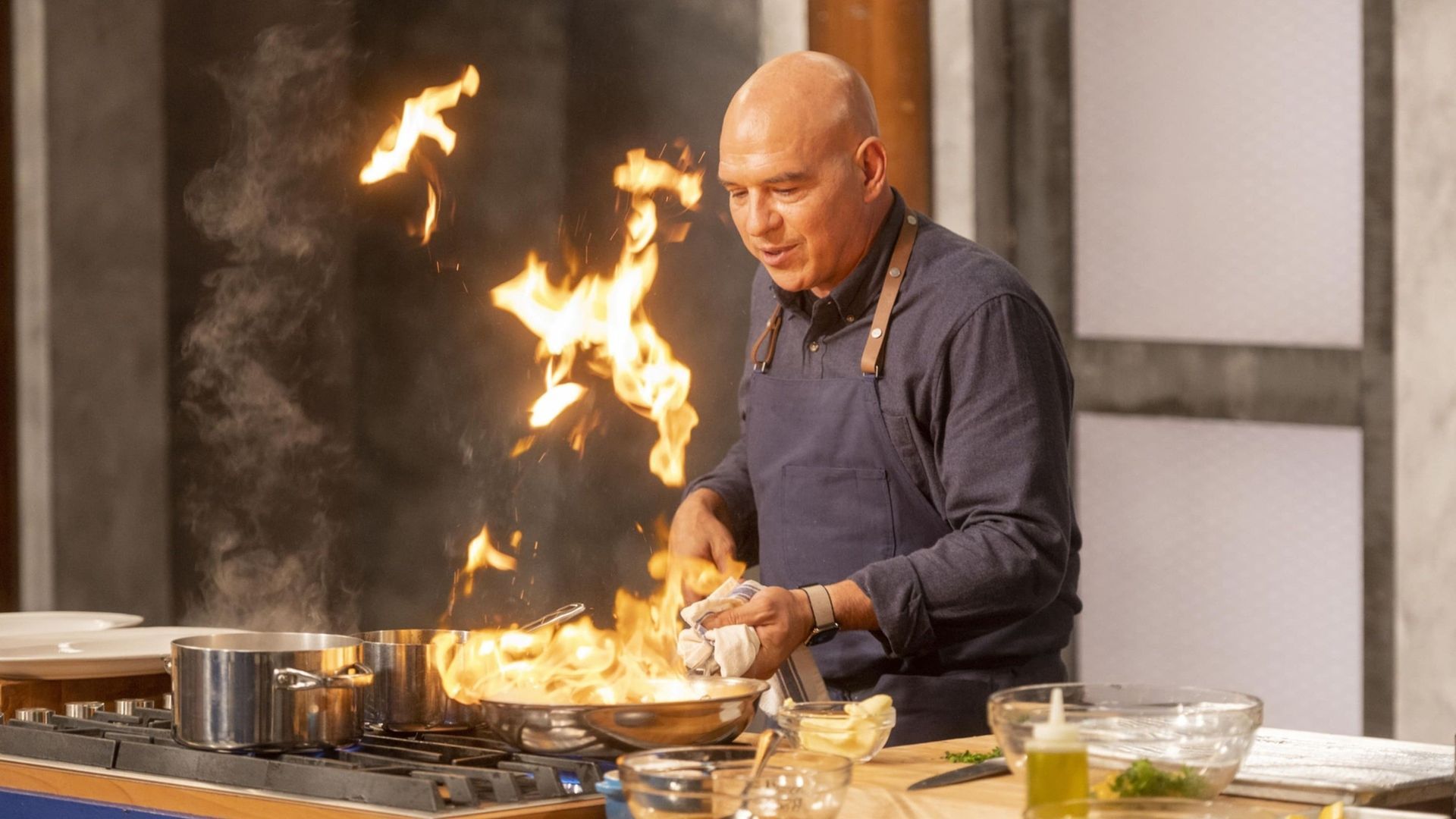 E6Final Test and Celebrity CaterersChefs Anne Burrell and Michael Symon teach their final two recruits how to make a three-course, restaurant-quality meal, and the judges choose a winner. Then former recruits react to an episode with celebrities, an hors d'oeuvre cook-off and Chef Tyler Florence.