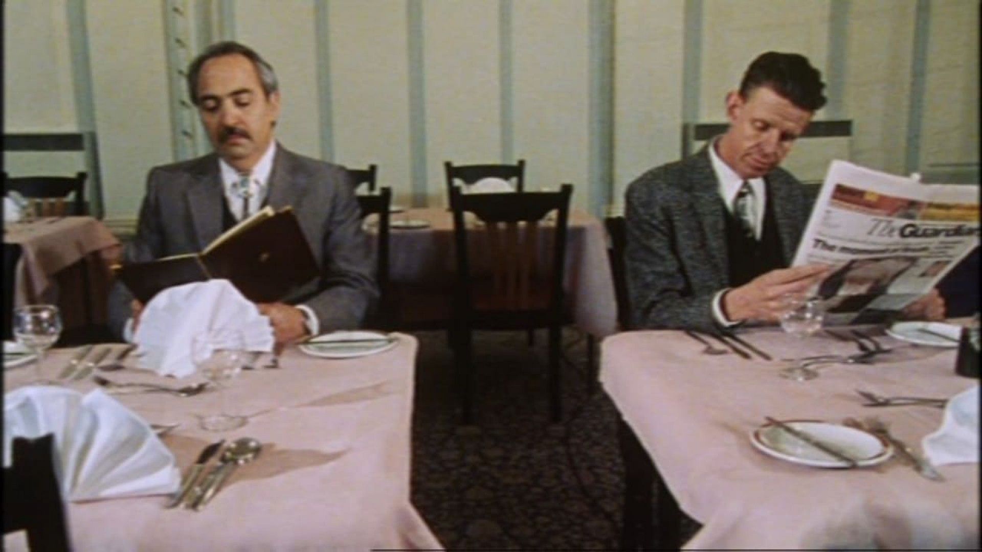An American art dealer (Miguel Sandoval), who specializes in southwestern topaz, arrives by train in Liverpool. Similarly, a very proper British art dealer (Alex Cox), who specializes in African art, arrives in the same hotel. The two meet in the hotel's abandoned restaurant and decide to set off in finding an evening meal, which becomes problematic immediately when the Brit reveals he is vegetarian. While following their pursuit of a mutually acceptable meal, the main point of the film is their discourse en route to their various attempts at an eatery.