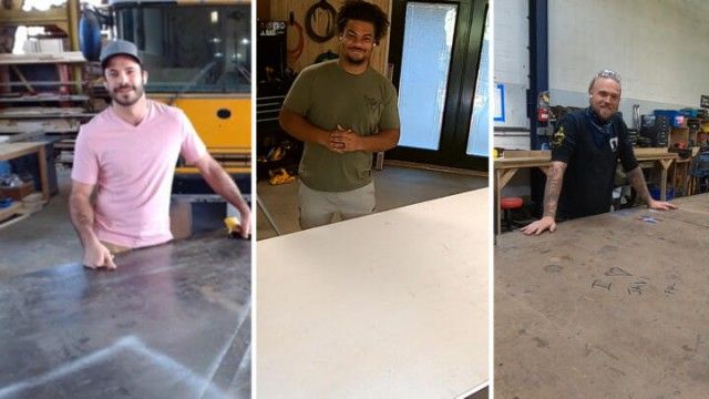 E3Kicking GrassTim Allen and Richard Karn challenge the maker's imaginations by having them build a do-it-all landscaping machine. But before they can tackle their yard work, they have to build a shock-absorbing food tray for a comfy recliner. Can the makers prove they have the skills to win or will they get mowed down by the competition? - Bad to the Bone