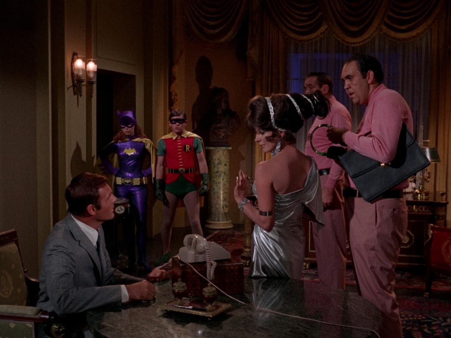 E12The Foggiest NotionLord Ffogg and Lady Peasoup plan to steal a ship-worth of mod clothing material with which they can control the fashion world of Londinium. Ffogg and his men subdue Batman, Peasoup and her girls grab Robin and Lady Prudence uses the paralyzing fog on Batgirl. - The Bloody Tower