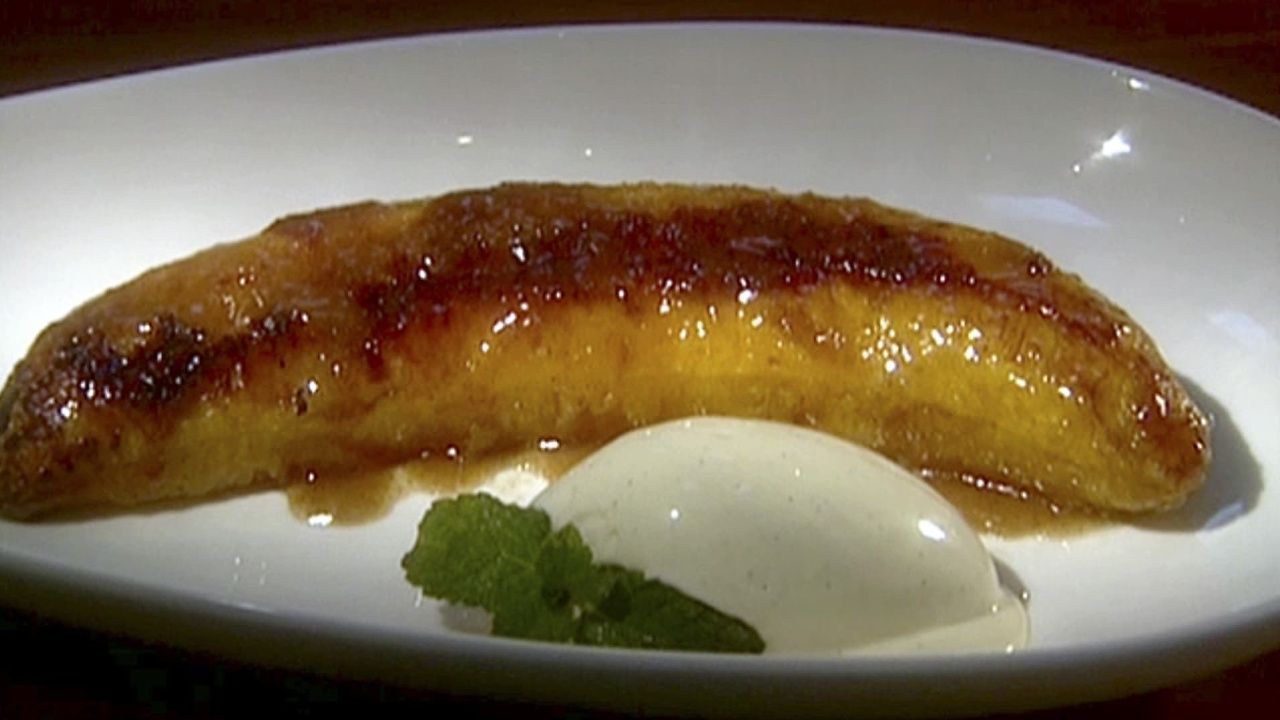 E10Smoldering SweetsSweets on the grill? Start the day with a BBQ breakfast; French toast and juicy plum kabobs hot off the grill. In Miami plantain bananas are caramelized on the grill and served over cinnamon ice cream. Plus grilled pineapple upside-down cake & grilled toast marshmallows S'mores. Recipes in This Episode * Grilled Plantains with Cinnamon Ice Cream * Molasses Brined Pork Chops * Croissant French Toast Stuffed With Grilled Peaches * Apricot Banana Frappes * Southmoreland Plum Kabobs with Cardamom Sugar Rub * Traditional S'mores * S'moritos * Prize Winning Pineapple Upside-Down Cake on the BBQ - Spice SecretsE11