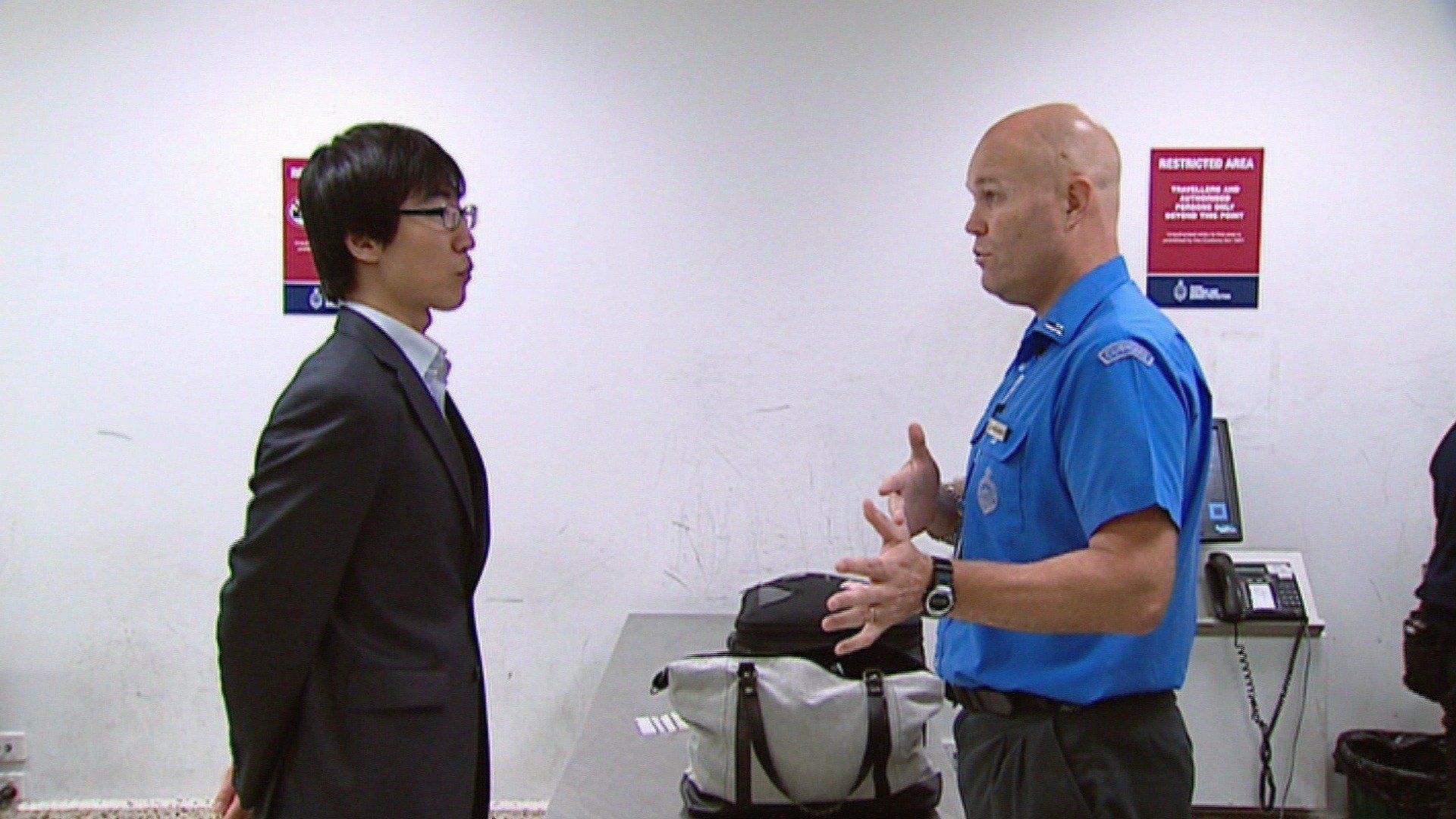 E8Episode 8A New Zealand passenger is not happy that he is separated from his wife and children after Immigration discover that he has a criminal history. An incredible situation in Customs could put a Vietnamese passenger's life in danger. Immigration compliance officers work with police and the Department of Transport in a crackdown targetting illegal taxi drivers in Sydney's southern suburbs. - Angry German/Funny looking Vietnamese