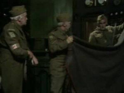E1The Big ParadeMainwaring watches a film reel at the cinema which shows Winston Churchill inspecting Army troops and their mascot - a ram, of course where Mainwaring's concerned. If another platoon has a mascot, so must his. Sponge volunteers one from his farm but they have to catch it first; something that of course ends in complete disaster with Pike up to his neck in it - literally. Meanwhile the town parade is being organised and of course Mainwaring wants the platoon to lead, but Hodges has other ideas... - Mum's Army