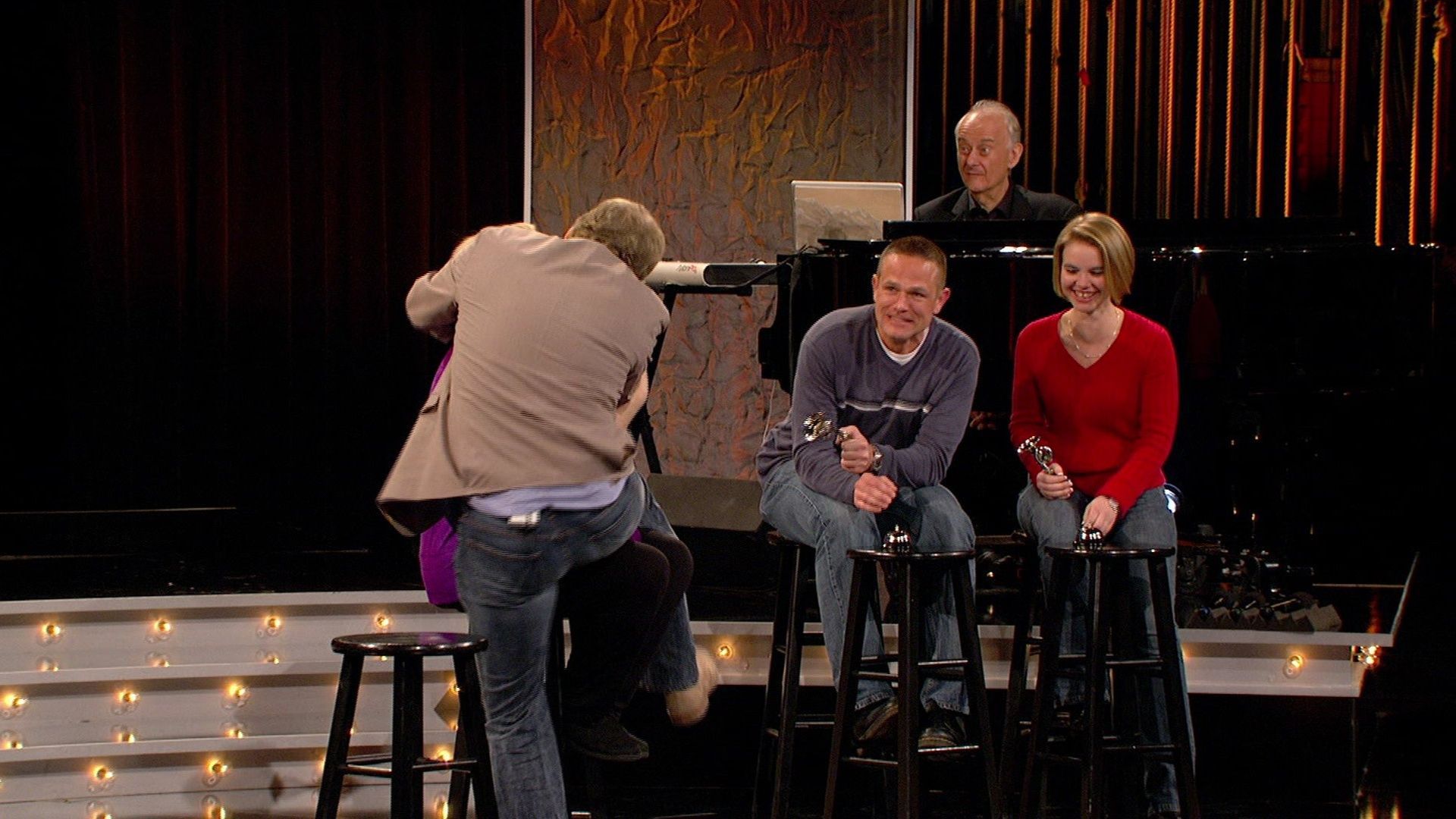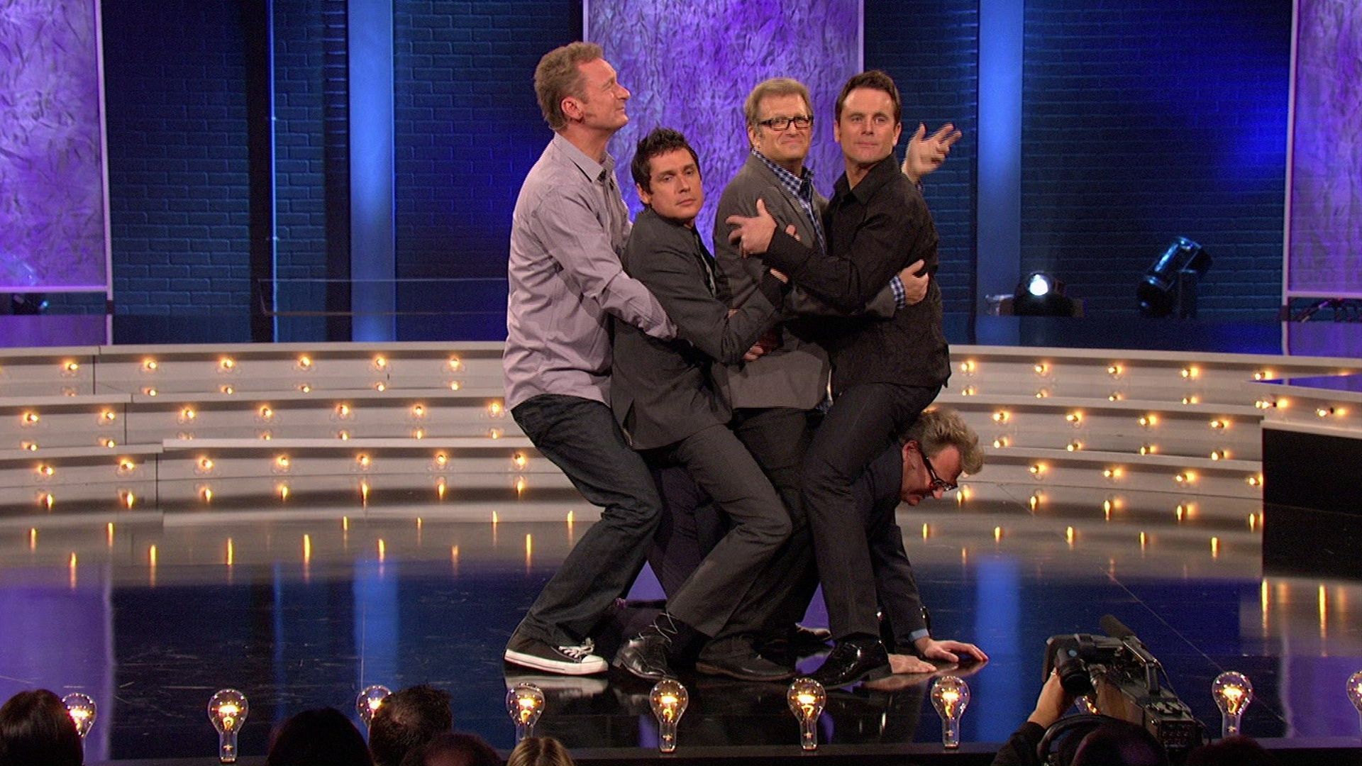 E1Episode 1Wayne, Jonathan and Brad sing a Broadway-style song to a woman celebrating the 5th anniversary of her third marriage. Jonathan and Ryan play "Moving People" with the help of audience members. Everyone gets in the act, playing "Freeze Frame." Wayne and Jonathan play "Kick It," breaking into a rap at Ryan's command. - Episode 2
