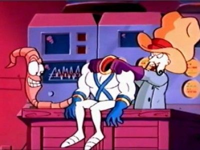 E11Bring Me the Head of Earthworm JimThe origin of Jim's super suit is finally revealed. Two of Jim's archenemies create a fake super suit and replace it with Jim's. Now they have the Universe on its knees, while Jim unwisely consults comic books on how to regain his powers. - The Anti-Fish