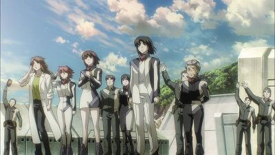 E26TatsumiyajimaAs the Human Army's large fleet approaches, the voice of Tatsumiyajima finally reaches them in the form of Birds sent by Fumihiko. Human Army forces begin to abandon the Neo UN's cause and aid Tatsumiyajima against the enemy core and those under its manipulation. As the battle goes on, Altair makes its appearance at last...
