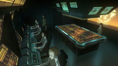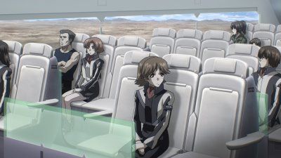 E3The Price of a ConversationMitsuhiro and the other Human Army pilots visit the café Rakuen on Tatsumiyajima. Billy excitedly devours his curry and Ai takes notice of Kazuki, while Mitsuhiro keeps a close eye on the scene and Maya watches them all with a thoughtful expression. Miwa has met Emery and the two happily converse in some special way that only they understand, while Miwa's mother, Yumiko, watches with concern. Meanwhile, Fumihiko is shocked by the information offered by General Narain. A frightening situation that could change the world's balance of power is pressing closer. - The Successors
