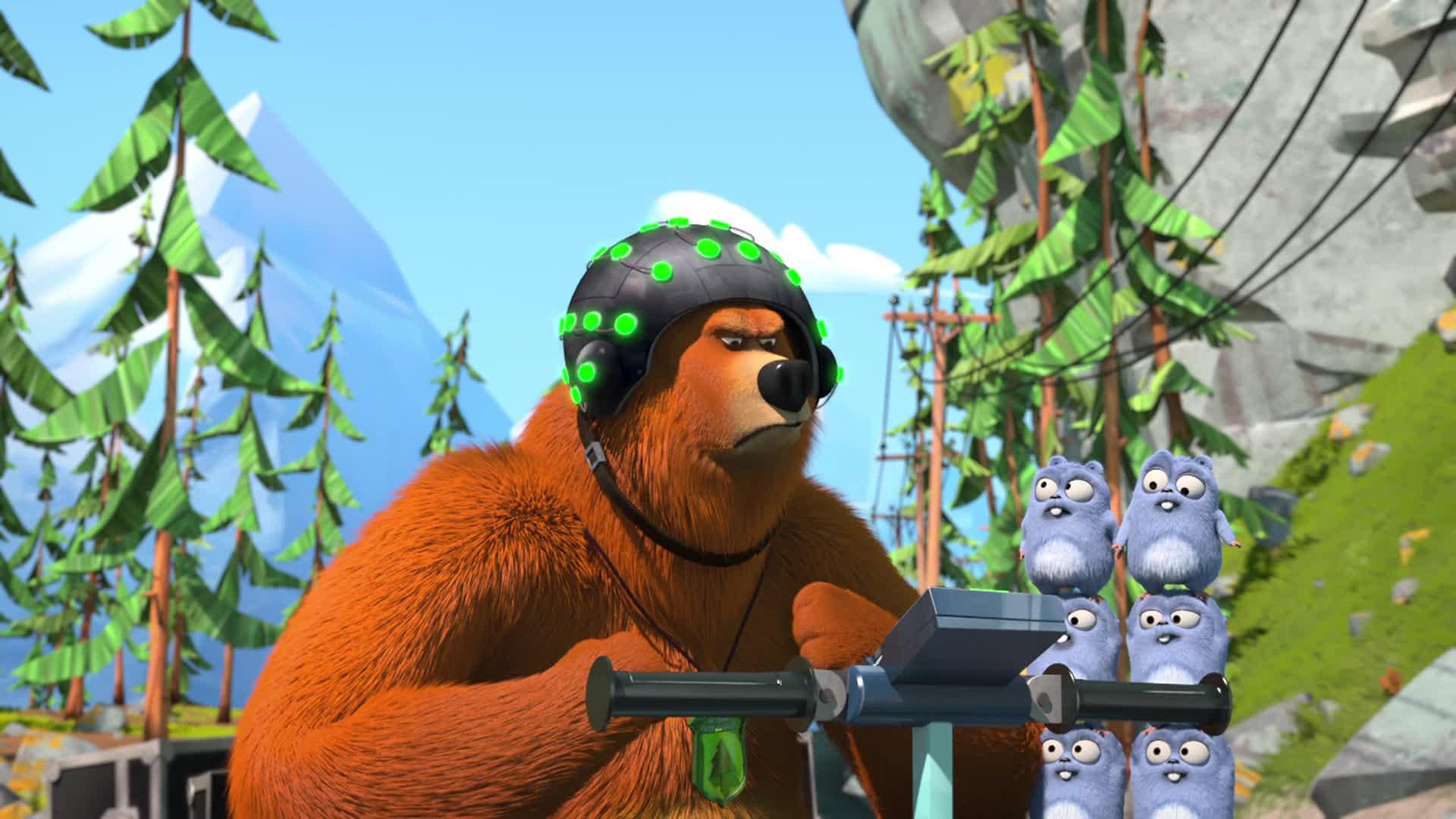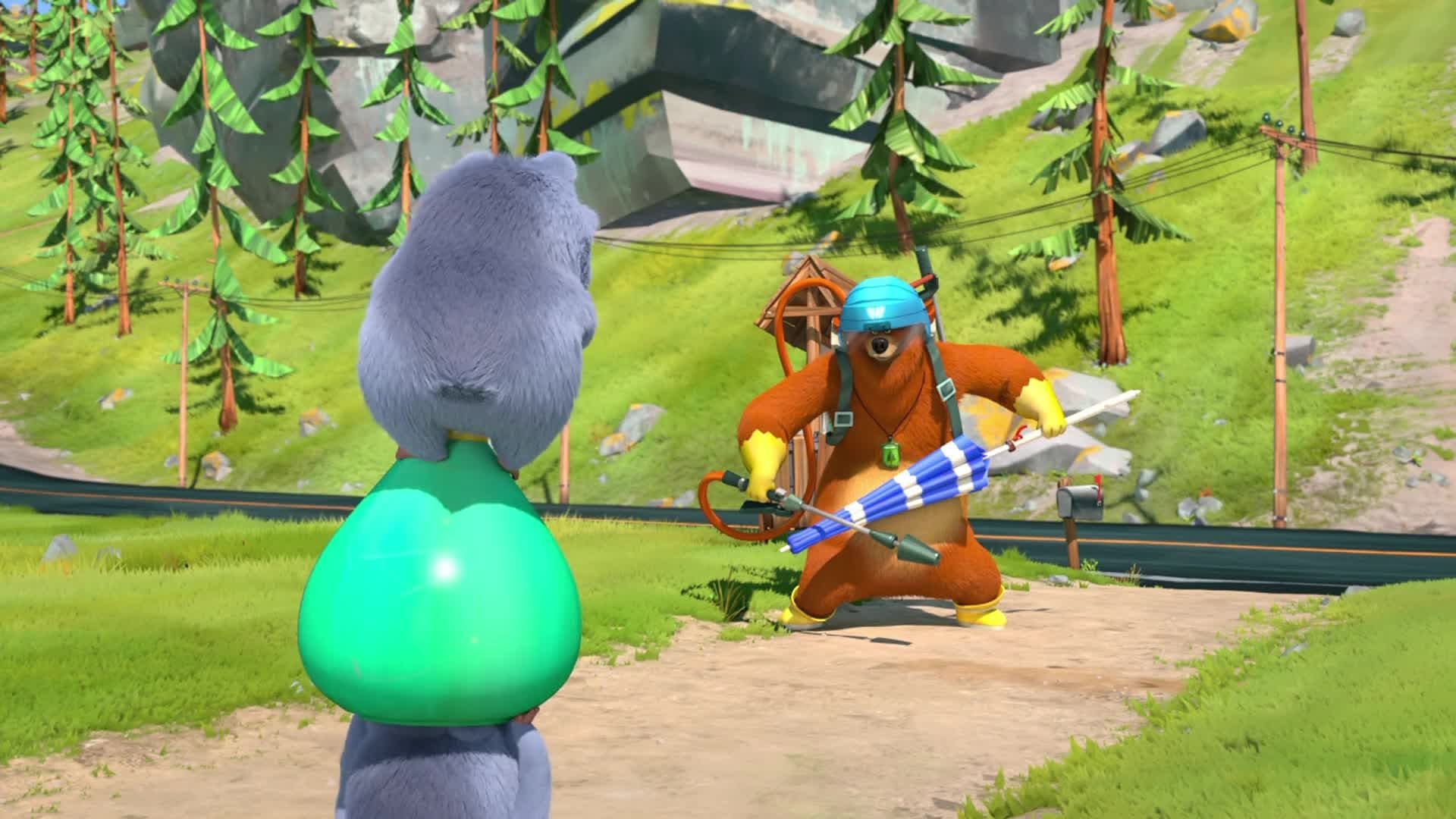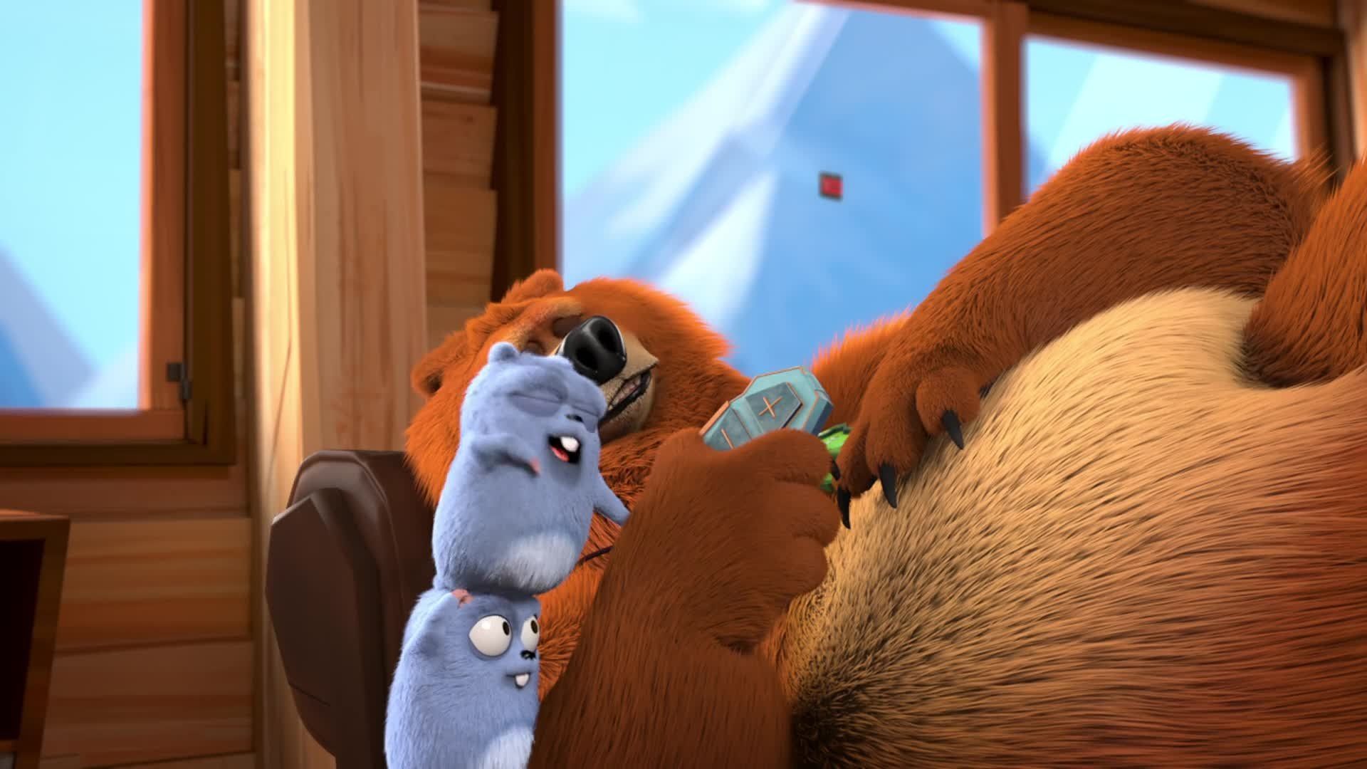 E13Good Bear, Bad BearDuring fighting for the chocolate spread, a magical hammer separates the good nature and bad nature of Grizzy and he becomes into two Grizzy that one is good Grizzy while second is bad Grizzy. Good bear make chocolate spread for lemmings while bad bear tries to get for his own. - Beastly Genie