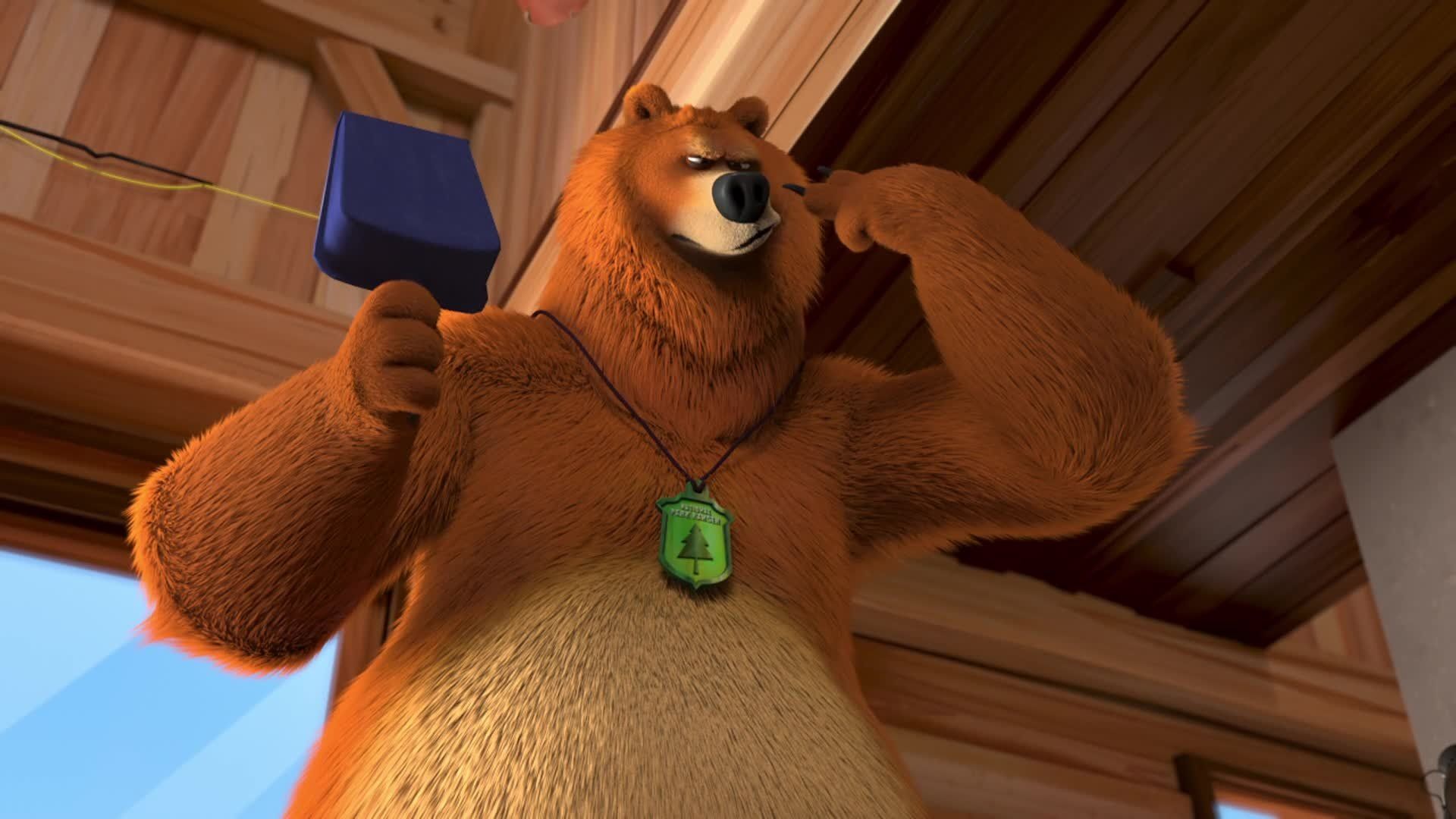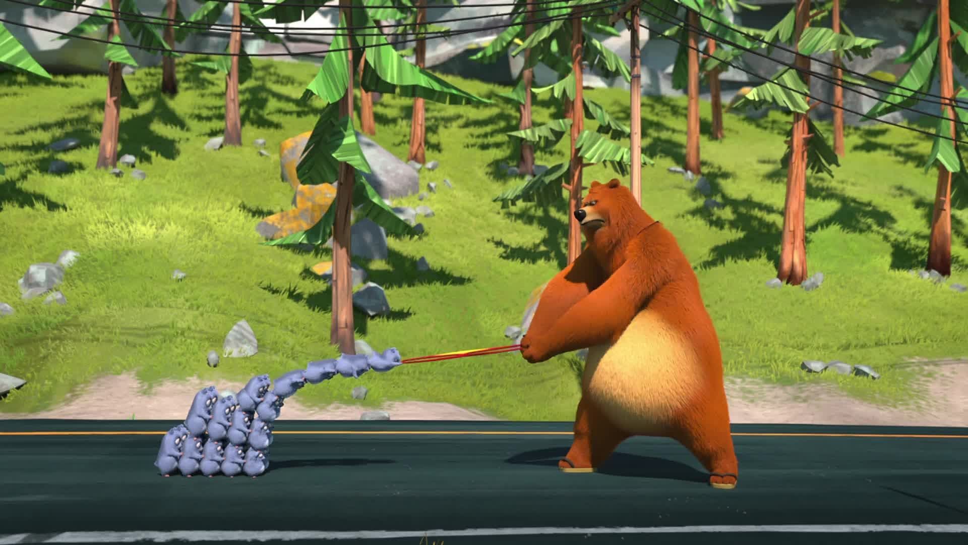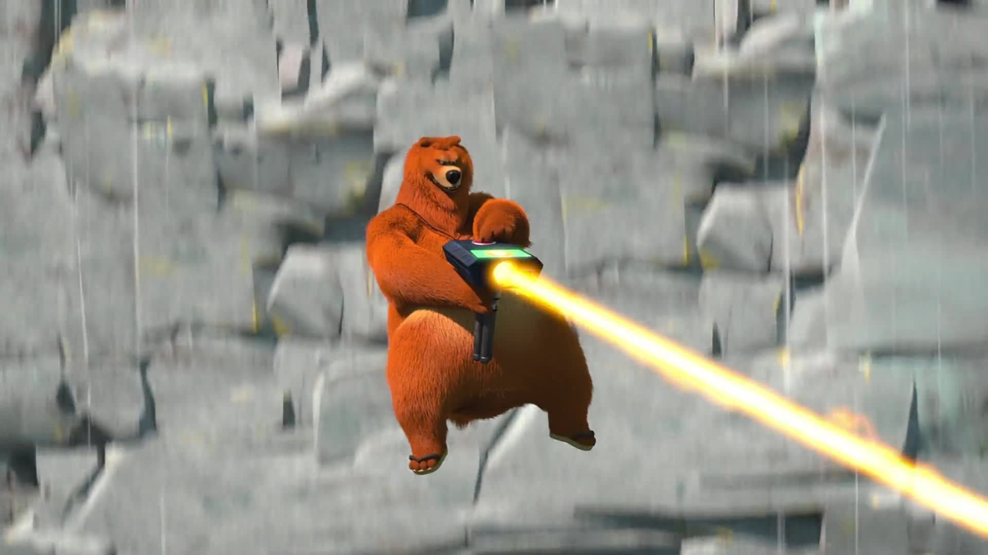 E13Good Bear, Bad BearDuring fighting for the chocolate spread, a magical hammer separates the good nature and bad nature of Grizzy and he becomes into two Grizzy that one is good Grizzy while second is bad Grizzy. Good bear make chocolate spread for lemmings while bad bear tries to get for his own. - Beastly Genie