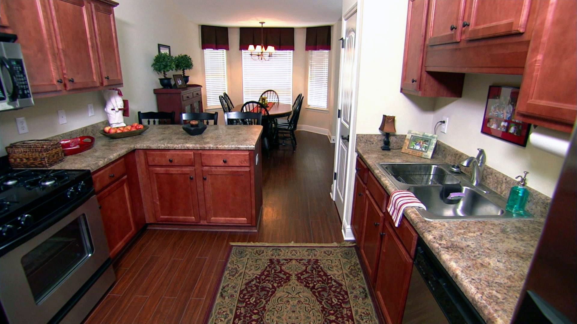 Newlyweds Move Out Of Mom's Basement Into First Home In Annapolis, MarylandNewlyweds Mike and Amy Harris couldn't save up enough money to buy their first place and still pay rent. So they moved into Mike's Mom's basement for a few months to jump start their savings. Mike's mom Jeannie isn't able to contribute financailly, but she feels that by letting them move in with her, she is essentially giving them a house warming gift. But having them at home with all their stuff is also starting to drive her crazy. Mike and Amy are also tired of living in the basement, they don't even have a bathroom, they have to walk up two flights of stairs just to take a shower. Their budget is in the $300K - $350K range, and they want a move-in ready home with a master suite and a fenced in yard for their dogs. The first place their real estate agent Jeannie Lindsley takes them to see is just two blocks from Mike's mom's house. It's a 3 bed, 2 bath ranch with 1600 square feet that's listed for $340K. Amy likes the updated kitchen, especially since she can reach all the cabinets. Mike likes the three seperate living areas, but he's not crazy about the 3 different kinds of flooring. They both like the master suite and closet, but amy thinks the yard is small and Mike isn't sure he wants to live so close to his mother. MIke can't make it for the second tour, so his Mom joins Amy in the search. The second place they see is a 2-story Cape Cod with 3 bedrooms and 2 bathrooms in 2100 square feet. The home is listed for $320K. They both like the fireplace in the living room, but the space itself is too small for their furniture. The home does not have central air, which would be a major added expense. But amy does like the upstairs master bedroom and the large backyard. The third place Mike and Amy see is a split-level house listed for $330K. It has 3 bedrooms and 2 and a half bathrooms in 1600 square feet. Amy likes the open kitchen, large deck and yard and the hot tub. But mike's not crazy about the size of the master bedroom and the fact that the living room is dow - Large Family Stationed in Vegas Buys First HomeE10