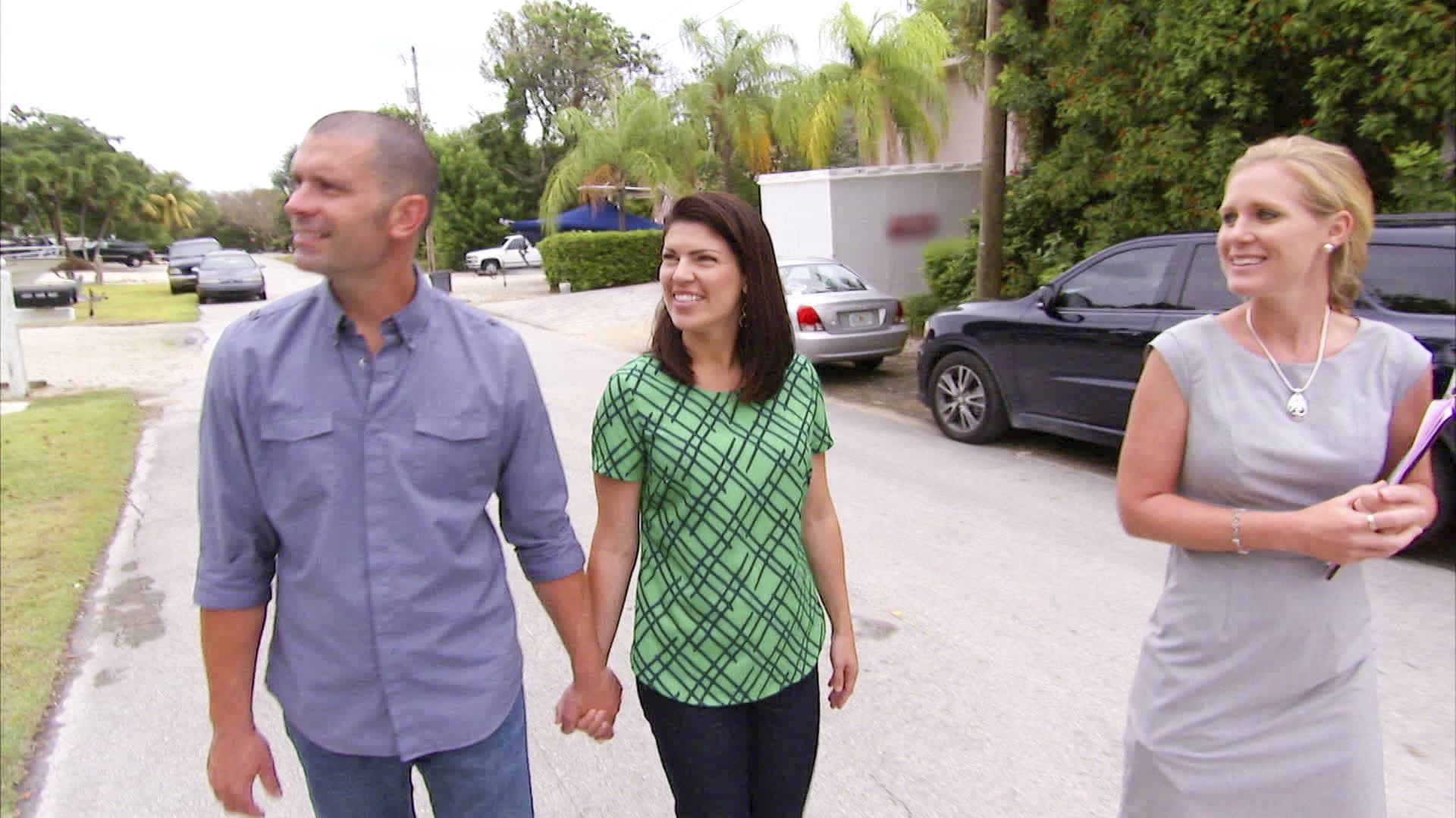 Searching the Island Paradise of Key Largo for a HomeStephanie and Brian recently relocated from Northern California to the island paradise of Key Largo, Florida. Brian wants a home with a Spanish style, but his top priority is a strong, sturdy house since hurricanes are common in the area. Stephanie, on the hand, would prefer a home with a Florida Keys look that's pastel and tropical, but most important to her is a shotgun style layout to take advantage of the nice tropical cross breezes. Working with a $450,000 budget, this hunt could get stormy. - Young Doctor Searches for a Home in Hip West HollywoodE5