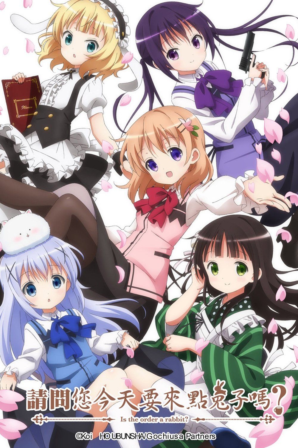 High school freshman Cocoa Hoto got lost and bumped into a coffee shop called "Rabbit House" while looking for a boarding house for the upcoming semester of her new school. Luckily, Rabbit House is the boarding house she's looking for, and to return the favor Cocoa starts working at the coffee shop alongside quiet and cool Chino, strong and athletic Rize, plus Chiya and Syaro from Japanese-styled coffee shop Amausaan, as well as the shop mascot rabbit Tippy, who sometimes doesn't quite act like a rabbit....