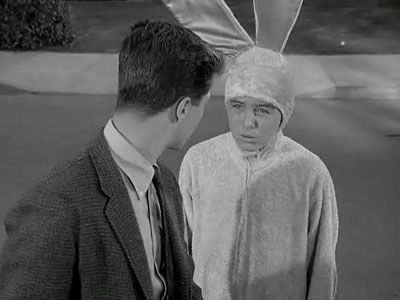 E16Beaver, the BunnyBeaver is cast as a rabbit for a school play and June has his costume all ready, complete with floppy ears and puffy tail. On the night of the play, Beaver needs to be at the school early and gets a ride with Lumpy and Wally in full costume, however, Lumpy's car breaks down and Beaver must walk the few blocks to the school to get there in time. - Beaver's Electric Trains