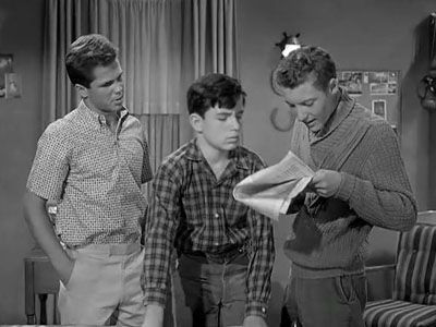 E30The Merchant MarineAngry with his dad for taking his car keys away, Lumpy Rutherford decides to secretly join the Merchant Marine Corp and has the enlistment information sent to the Cleaver's address instead of his own. Trying to be a good friend, Wally hides the Corp literature in his room; but, when June finds it while cleaning, she's sure that a break-up with his girlfriend and a recent reprimand from Ward have made Wally unhappy enough to leave home. - Brother Versus Brother