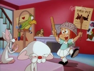 The popular animated characters Pinky and the Brain continue to concoct schemes to rule the world while hiding out in the suburbs where they live with Elmyra, a hyperactive tot of Tiny Toon Adventures fame.