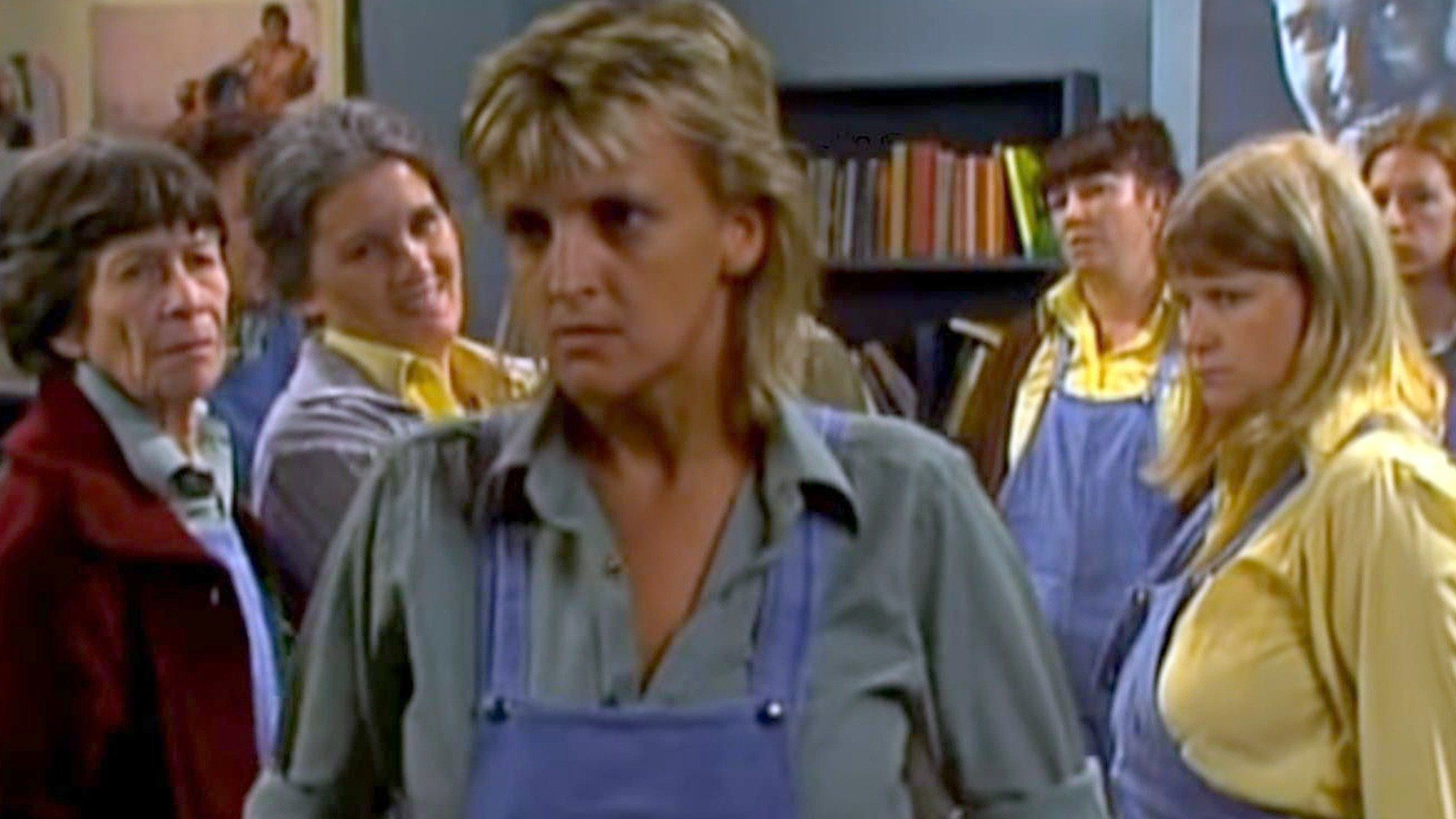 E30Episode 195Chrissie phones Meg at work to tell her about Mick's arrest and that she is in danger herself of being charged with harbouring a fugitive. Colleen tells the women that none of the officers are opposed to projects for the women in principle - only if they are going to cause more work. Erica accuses Vera of hypocrisy for spouting the Union line, but has it thrown back at her when she isn't willing to promote Colleen on the grounds that she isn't ready for the responsibility: Vera accuses her of really being worried by Colleen's Union position. Phyllis brings some dirty washing from the workshop, and is sent off to get some tools for Bea, who reckons the best way to undermine the officers is to create a lot more unnecessary work for them. Meg manages to convince the detective that Chrissie didn't know Mick was an escapee, so she is allowed to go without being charged. - Episode 196