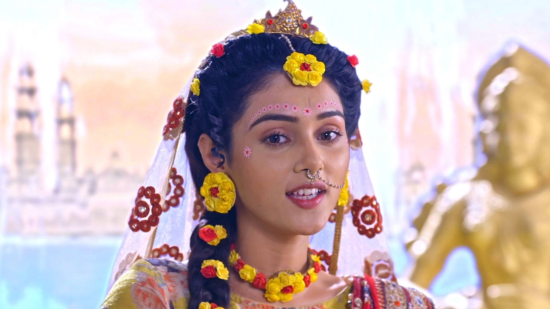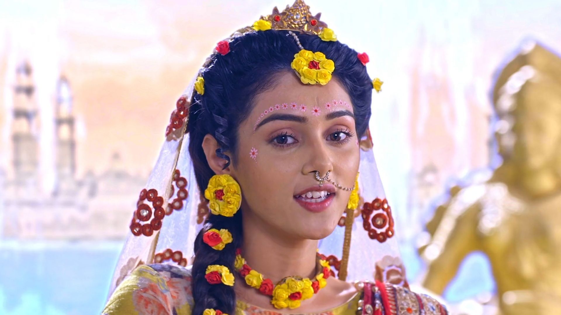 Radha Gets WorriedAs Krishna behaves weirdly, Balaram pleads with Radha to keep an eye on him. Eventually, Radha gets bothered when Krishna plays with the feather.