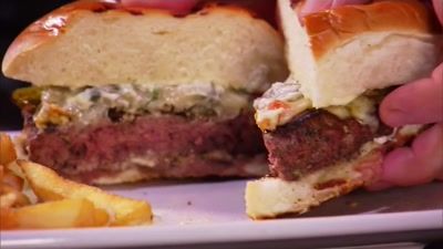E1Incognito in EscondidoAdam Richman goes to Los Angeles to find a spicy, off-menu burger at his favorite Thai joint. Then, he discovers an inside-out grilled cheese, a secret Mexican breakfast dish named after Godzilla, and a burrito that combines flavors from Peru, Korea and Mexico. LOS ANGELES, CA The Escondite/Godzilla Destroys Skidrokio Greenspan’s Grilled Cheese/The Inside Out Cha Cha Chili/Lomo Burrito Jitalda/Jazz Burger - Chi-Town Franken-Sandwich