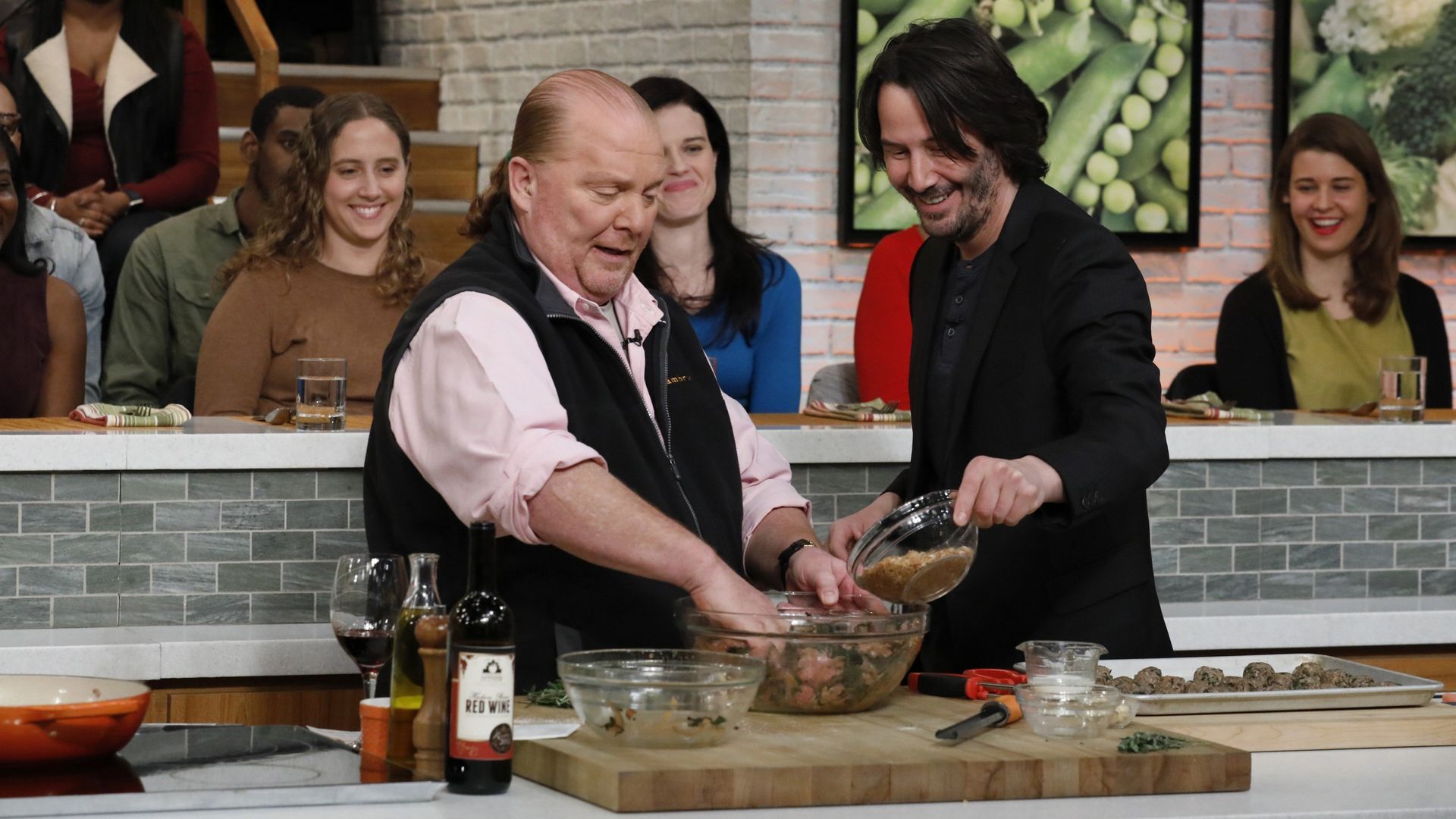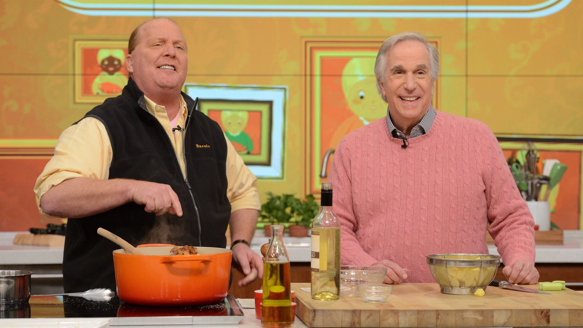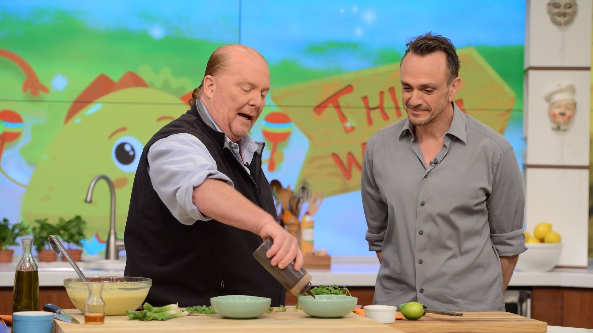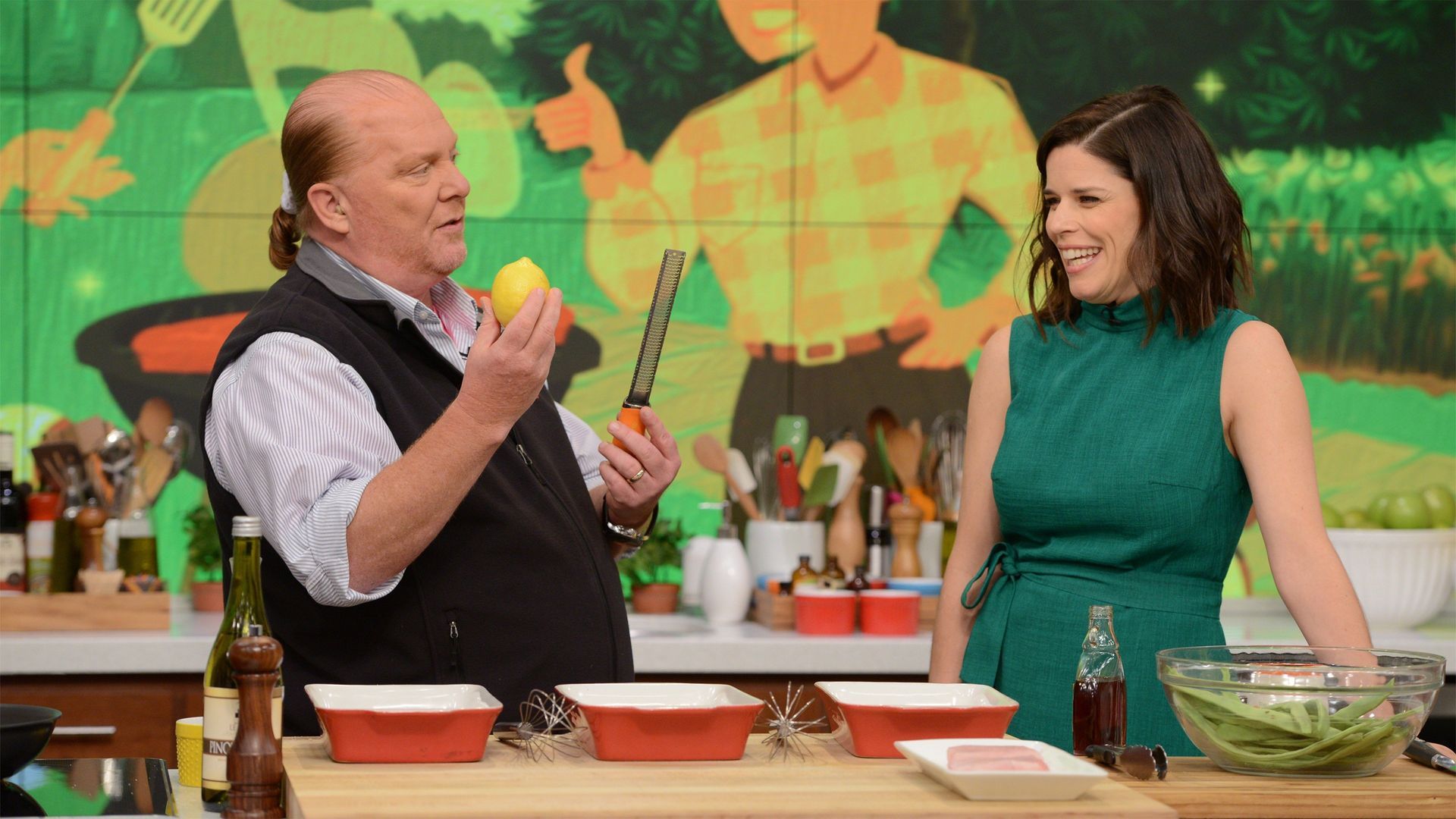 E164The Chew's Italian FavoritesThe hilarious Aziz Ansari ("Master of None") makes his "Chew" debut and cooks with Mario Batali; Wendi McLendon-Covey (ABC's "The Goldbergs") teams up with Clinton Kelly for a delicious bite; an exclusive behind-the-scenes visit to Atlantic City to check out Michael Symon's newest restaurant, Angeline! - The Chew's Summer Kick-Off Cookout