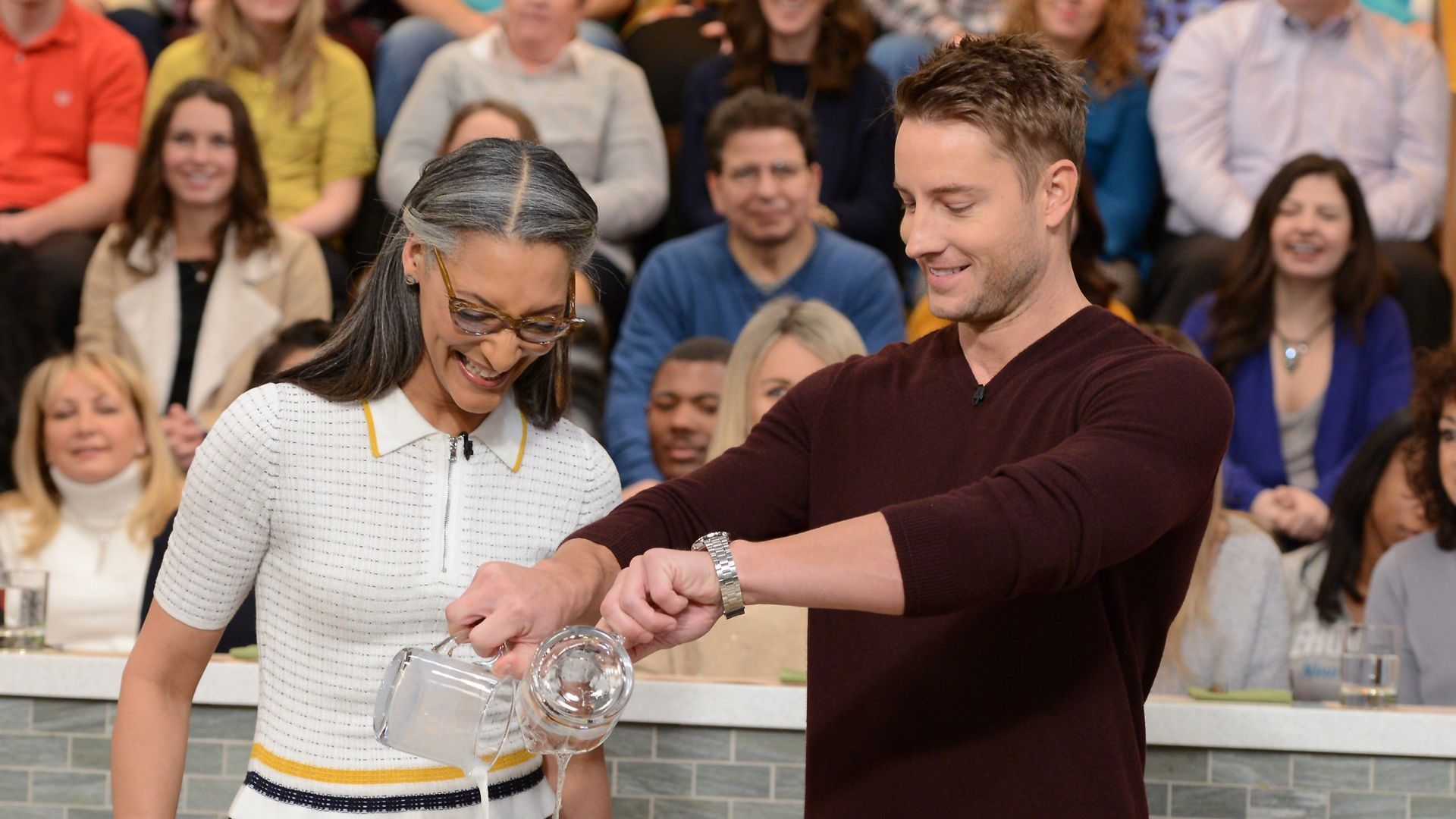 Summer Cooking School: How To Get Away With BrunchCharlie Weber (ABC's "How to Get Away With Murder") makes Spinach and Ham Frittata with Carla Hall. "The Chew" visits Grand Banks, an organization to clean up N.Y. harbor, one oyster at a time. Michael Symon and Clinton Kelly make a delicious breakfast combo – Stuffed French Toast with Bacon Bourbon Maple Syrup and paired with a Fellen-Grapefruit Delight.