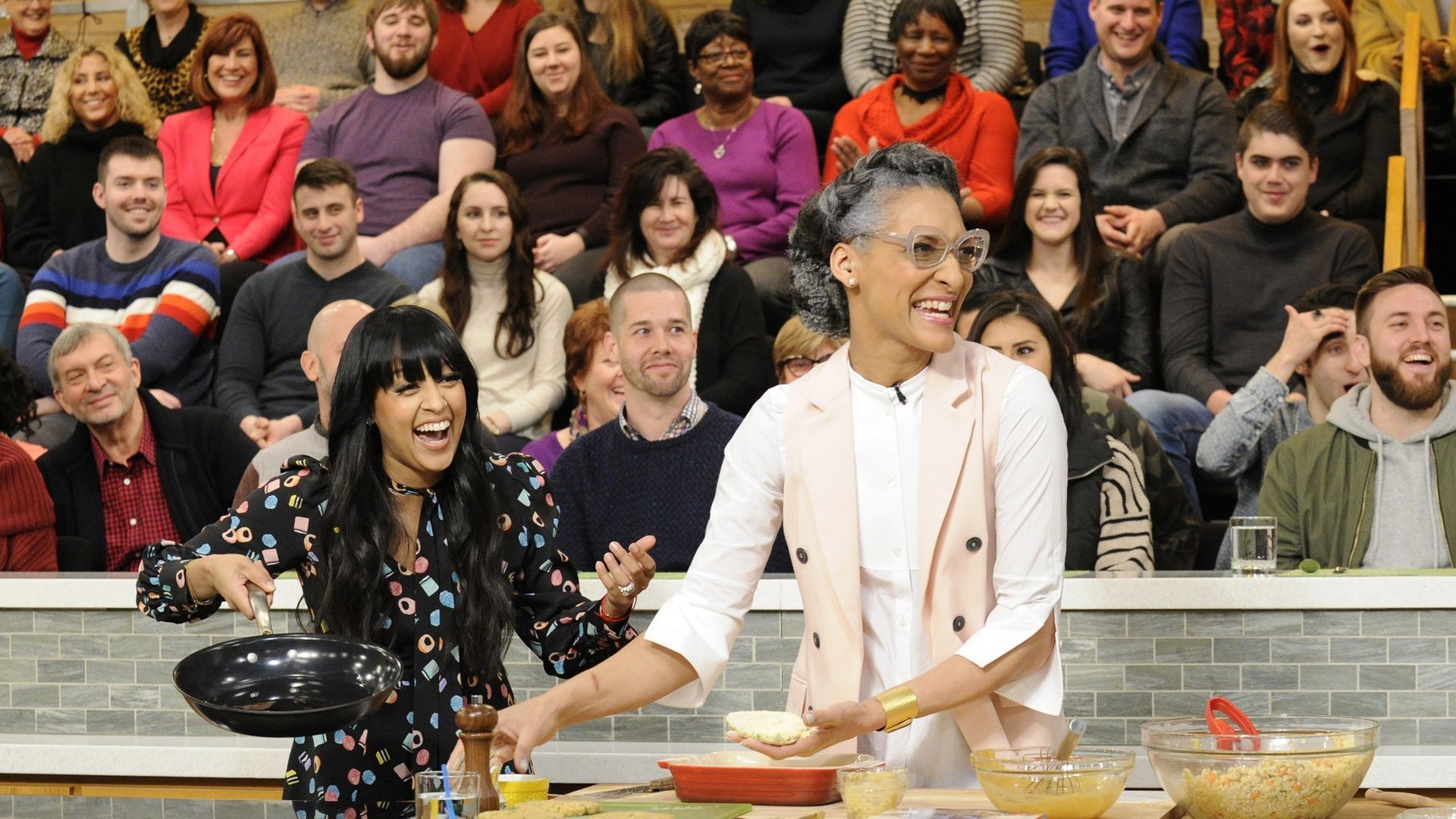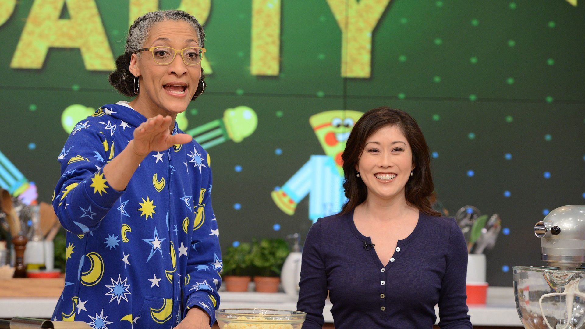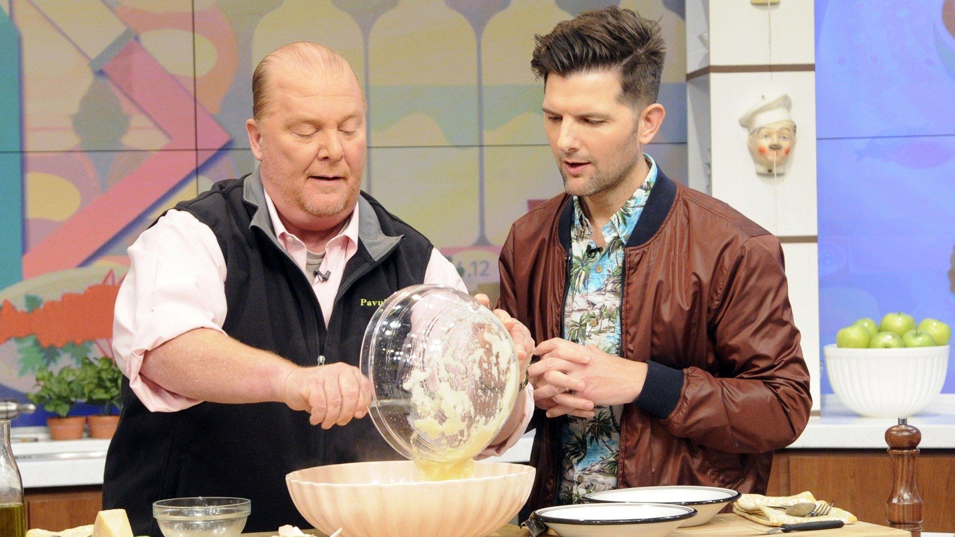 E157Favorite Food MemoriesThe hilarious Wanda Sykes ("Snatched") teams up with Clinton Kelly to make one of her favorite dishes; Carla Hall and Mario Batali make a mouthwatering mega mashup of their favorite flavors, with a Fried Green Tomato & Pimento Cheese Pizza; Michael Symon meets the 88-year-old pierogi queen who inspired her granddaughter's restaurant in Brooklyn, Baba's Pierogis! - The Chew's Best Baby Shower Ever