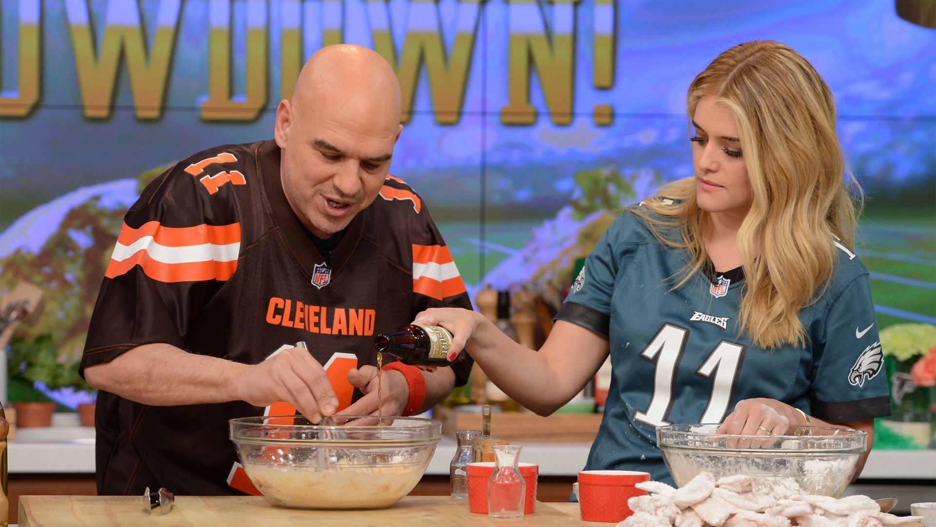 E162Chews Your Own Cooking AdventureBellamy Young (ABC's "Scandal") dishes and cooks a scandalously delicious dish with Carla Hall; an incredible surprise for die-hard "Chew" fans in Vegas; Ben Feldman ("Superstore") makes his first appearance on the show and cooks with Michael Symon. - The Chew's Italian Favorites
