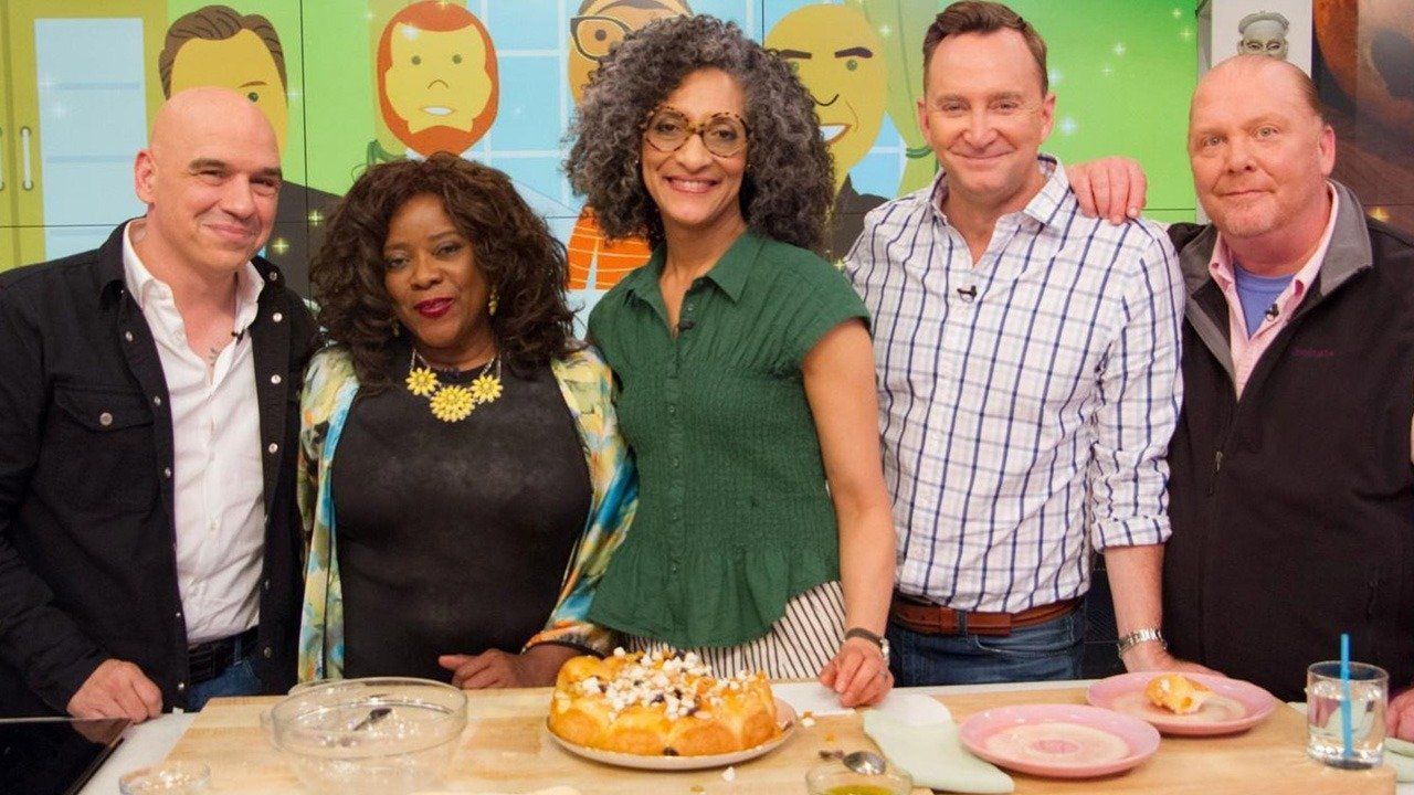 Summer Cooking School: Back To Baking BasicsBuddy Valastro ("Cake Boss") shares two amazing cake-decorating tips with Carla Hall. Clinton Kelly has a store-bought baked solution for Strawberry Cookie Bars, and Mario Batali makes a mouth-watering Chocolate Pecan Pie while answering audience questions. - Summer Cooking School: How To Get Away With BrunchE203