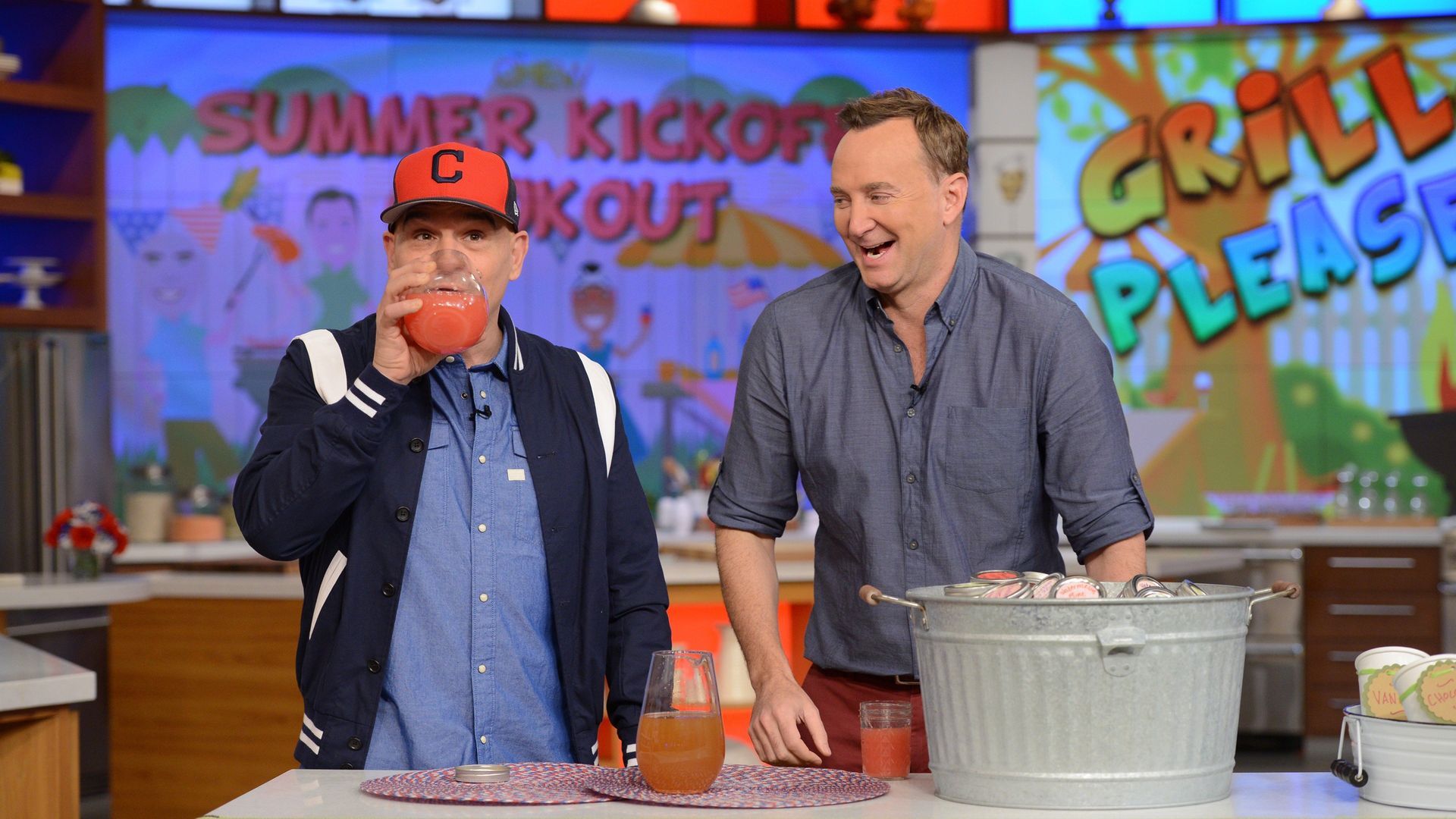 E177Sensational Summer SweetsMichael Symon makes a childhood favorite from Cleveland, Casatta Cake; Carla Hall whips up a Cornbread Blueberry Trifle perfect for a hot day; Daphne Oz creates a decadent dessert, Caramel Peanut Butter Popcorn Donut Drops. Clinton Kelly hosts his annual Tip-A-Thon, including his recipe for Pineapple Upside-Down Kebabs, a Pineapple Vase centerpiece and more pro tips for seamless hosting. - Warm Weather Wonders