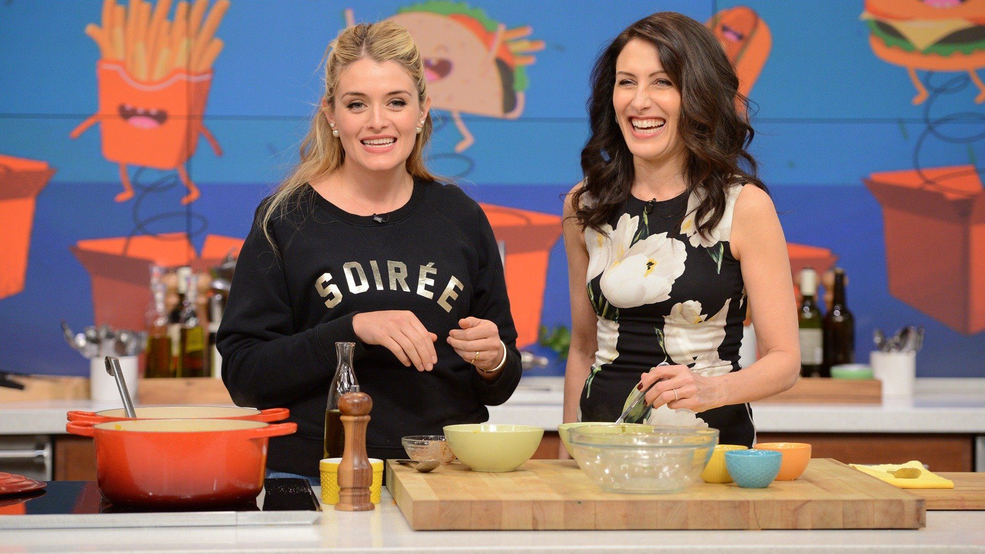 E137Weeknight Faves With A TwistThe hilarious Jenna Elfman (ABC's "Imaginary Mary") joins Clinton Kelly in the kitchen; Michael Symon gives a mouth-watering meatless makeover to Sloppy Joes; Carla Hall and Mario Batali create the ultimate tasty mash-up of two classics—Arancini Hushpuppies! - Party Ready Bites