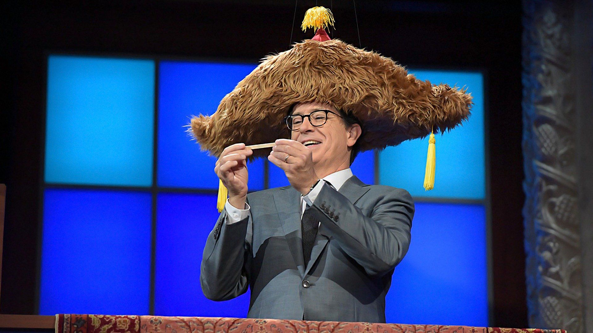 E2Scarlett Johansson, Elon Musk, Kendrick LamarStephen explains the technical difficulties he experienced during the making of his first show. The Big Furry Hat. Big Questions with Even Bigger Stars (with Scarlett Johansson). Elon Musk discusses SpaceX and his other projects. Kendrick Lamar performed a medley of songs from his album 'To Pimp a Butterfly’. - Vice President Joe Biden, Travis Kalanick, Toby Keith